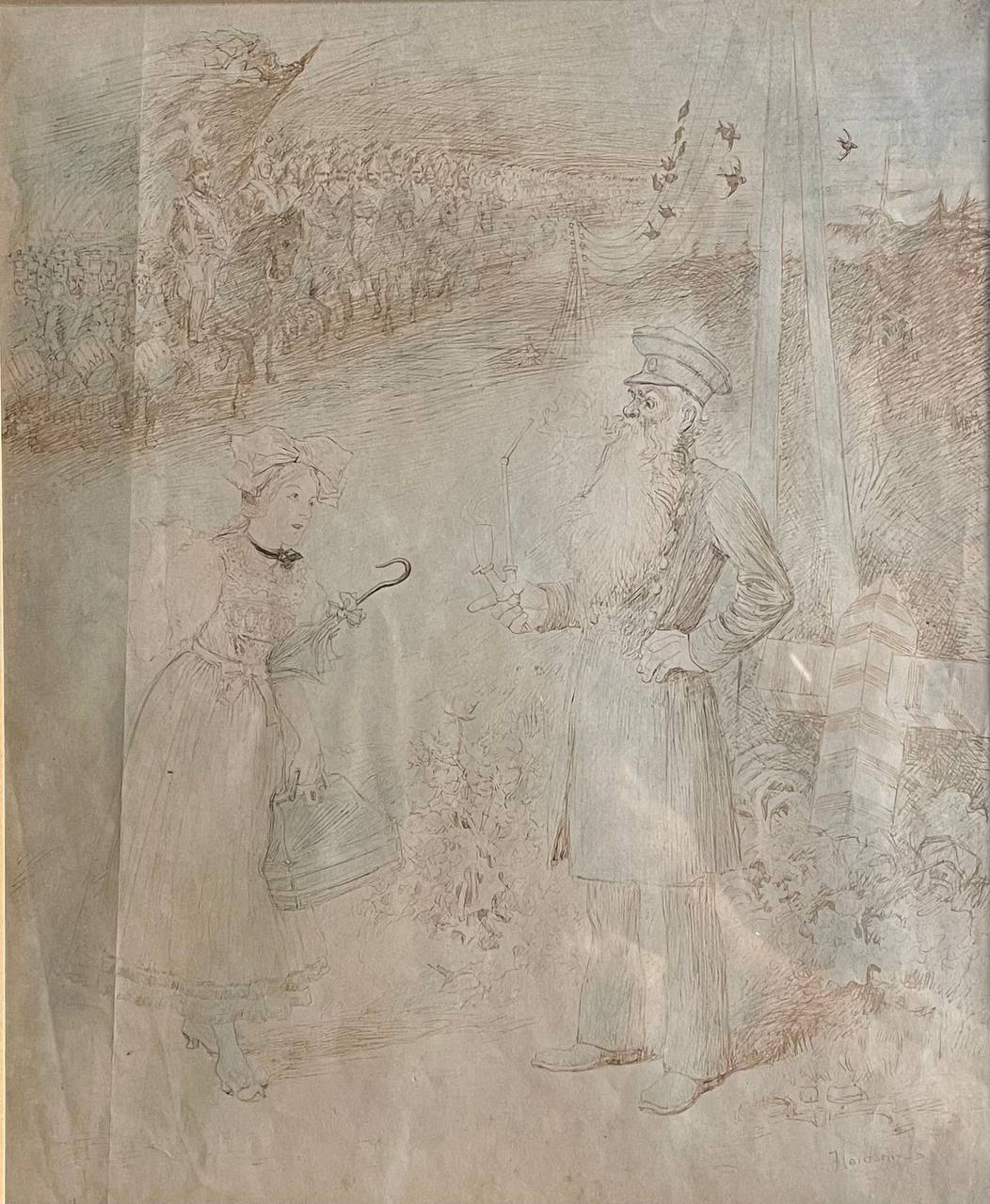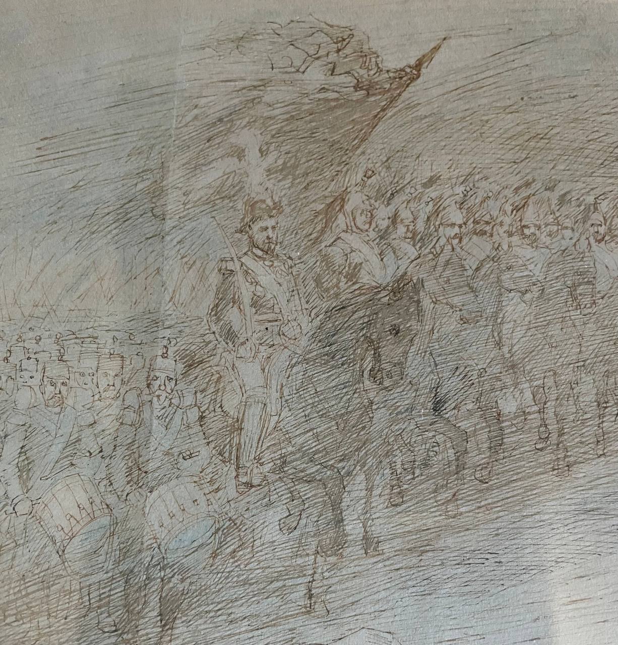 Антикварная гравюра "Смерть Моро. Перед Дрезденом. Август 1813"
