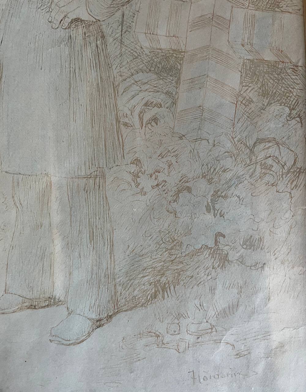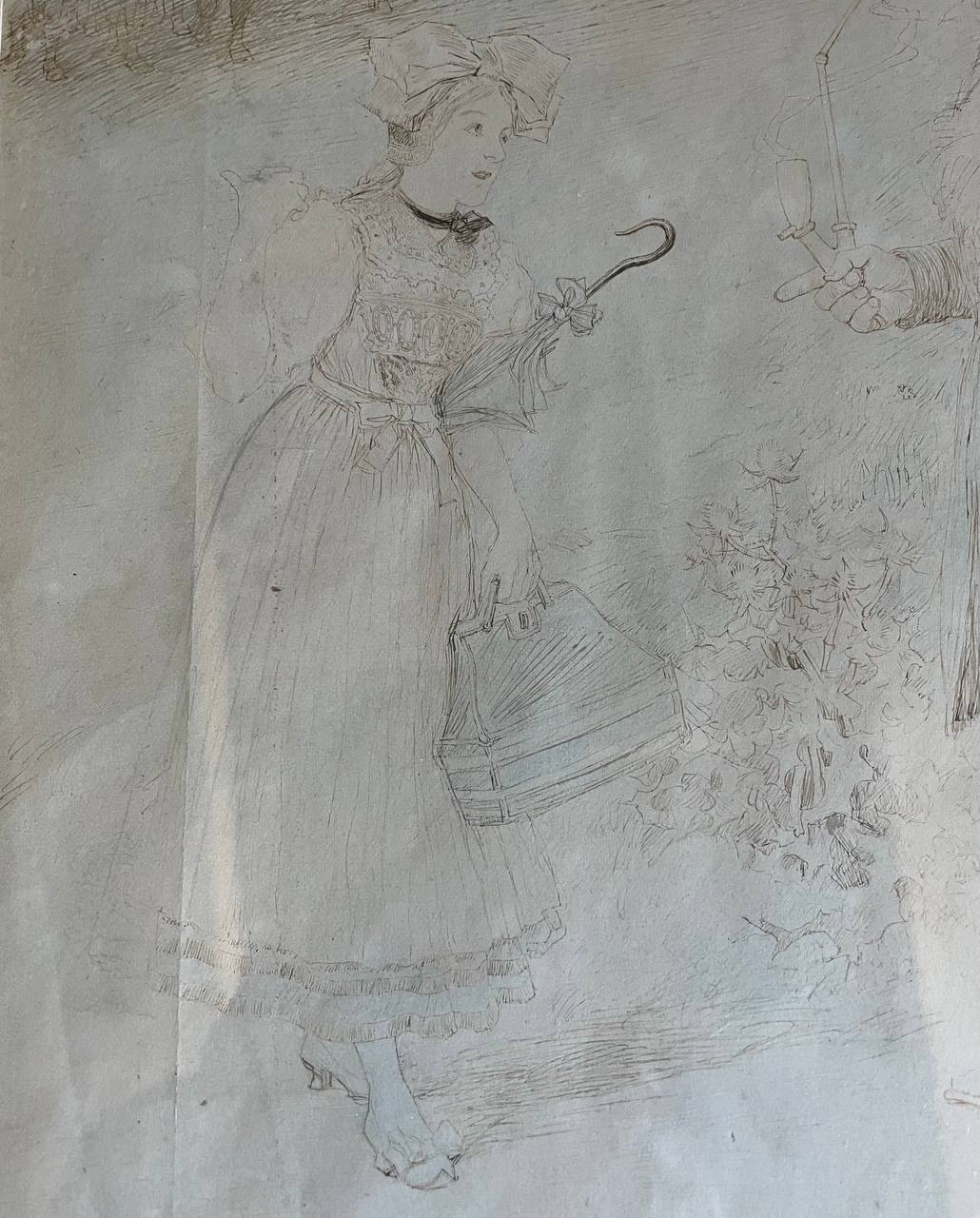 Антикварный эстамп «Нападение волка на овцу» начала XX века,...