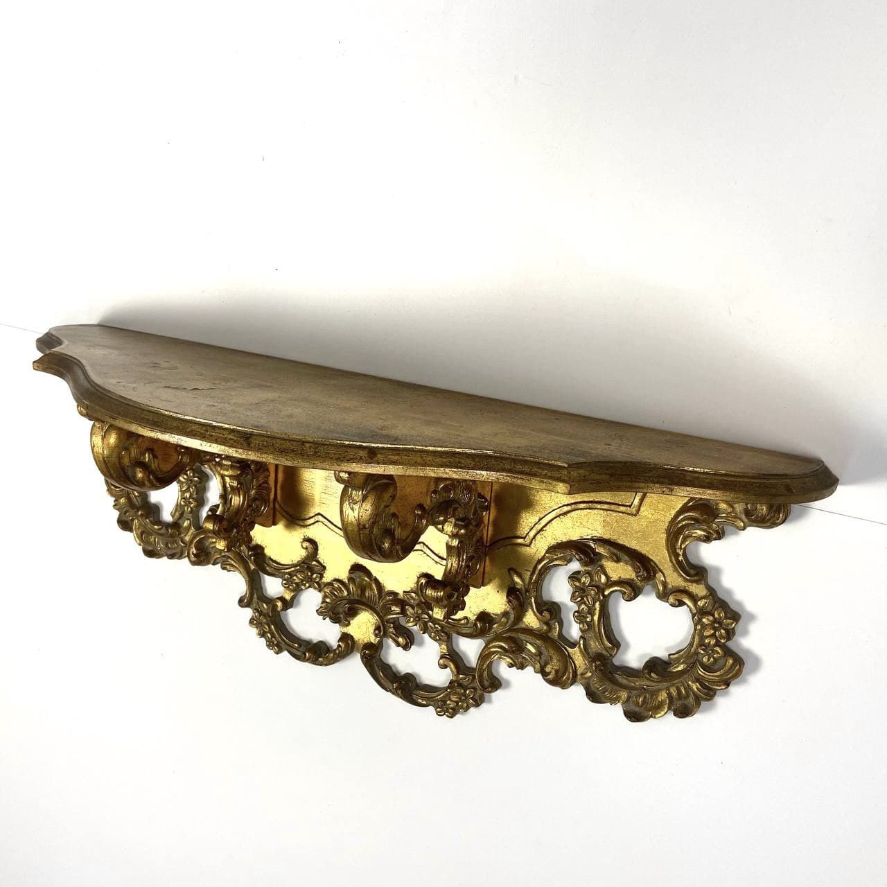 Консоль антикварная подвесная резная начала ХХ века, Франция. Дерево, ручная резьба, сусальное золото. Размеры: 74х27х29h см.