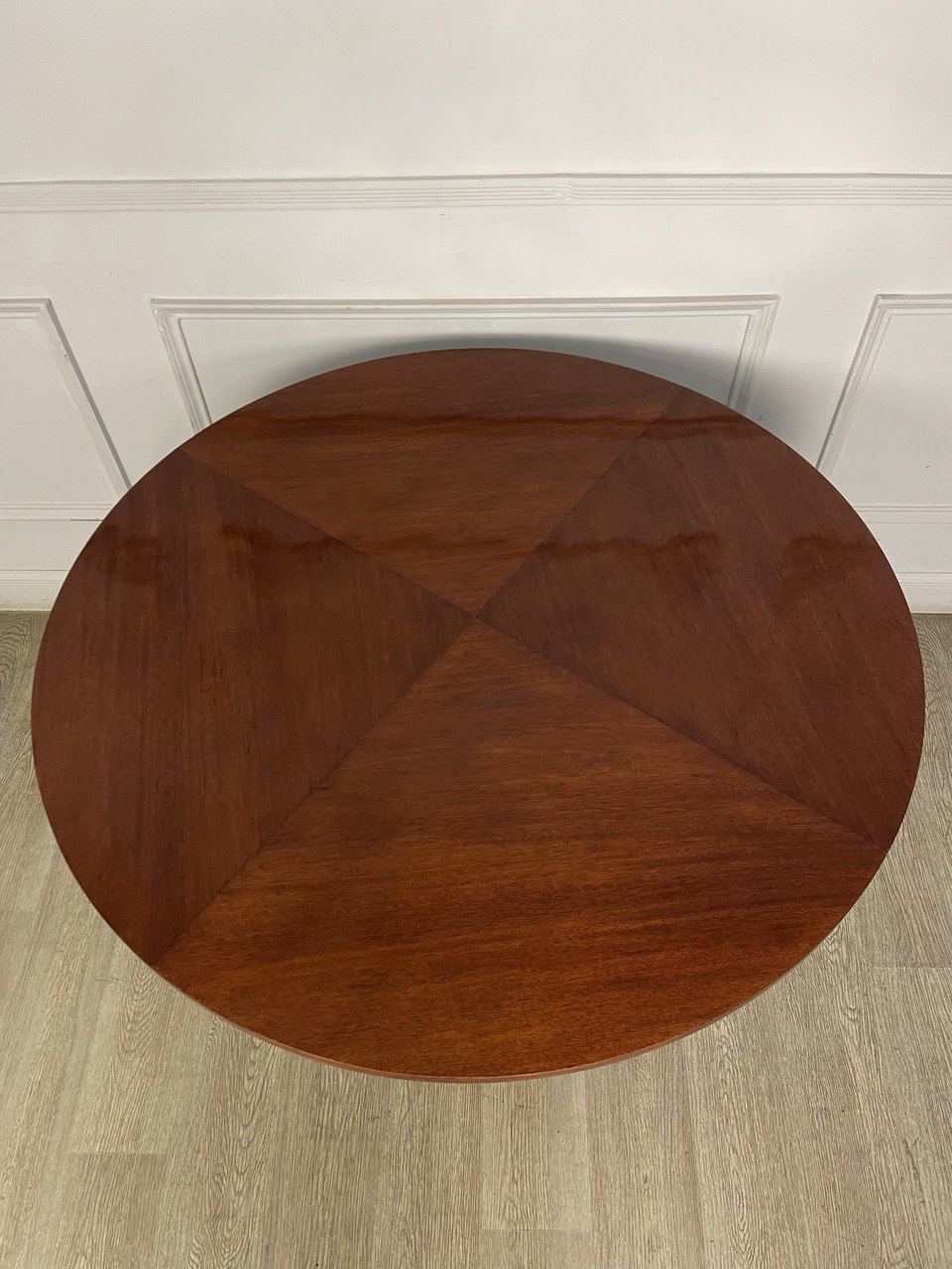 Круглый стол на одной ноге первой половины XX века, Karl Johan, Швеция. Выполнен из красного дерева. Диаметр 110 см Высота 75 см