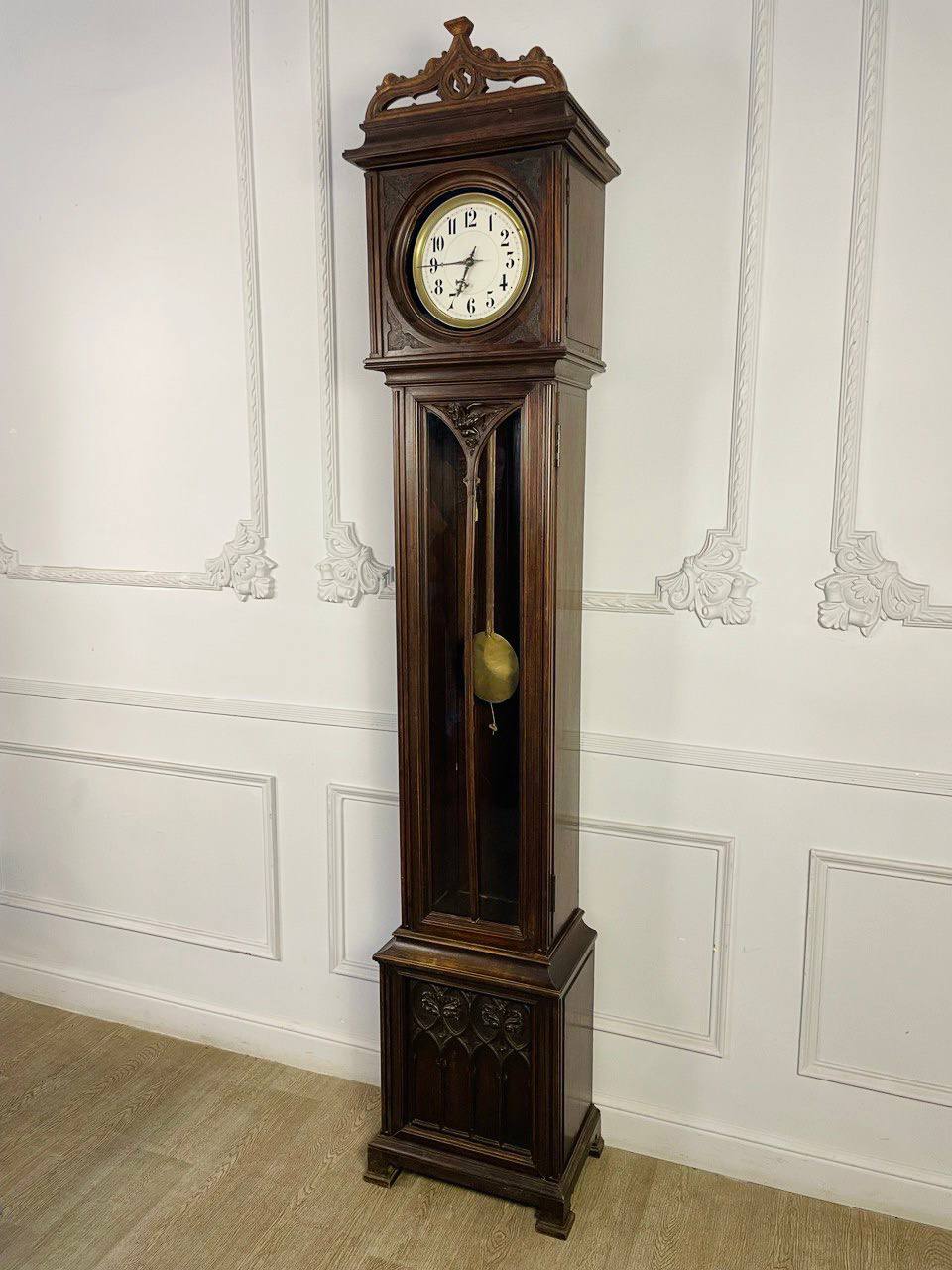 Напольные антикварные часы. Напольные часы Romanet Morbiek XIX века в готическом стиле, Франция. Выполнены из массива ореха. Ширина 48 см Глубина 31 см Высота 237 см