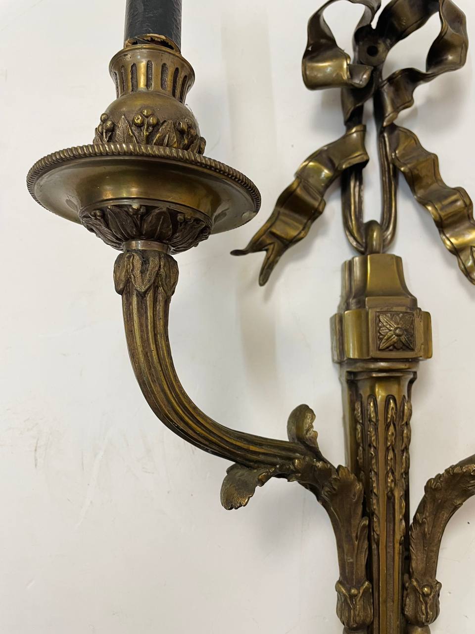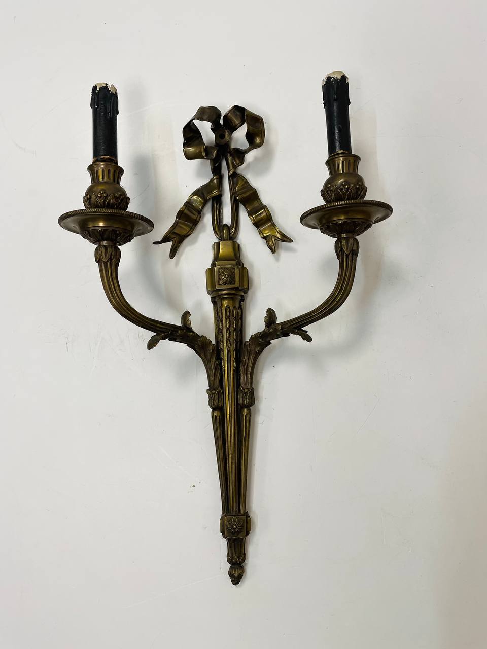 Пара больших бра начала XX века, Франция. Выполнены из бронзы. Каждое на две светоточки. Размер 33х11х55h см.
