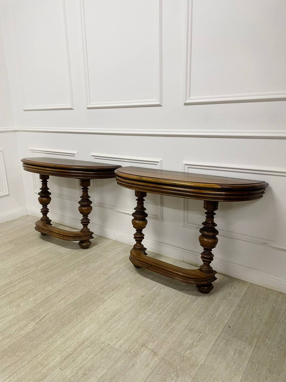Пара антикварных консолей начала XX века, Франция. Выполнены из массива ореха. Размер 104х41х70h см.