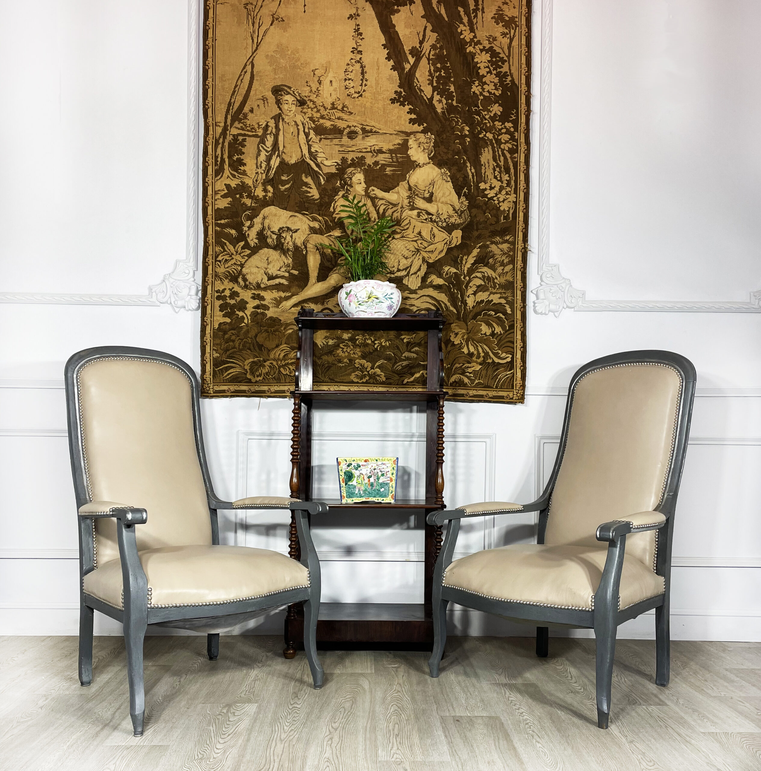 Пара антикварных кресел с высокими спинками середины ХХ века.