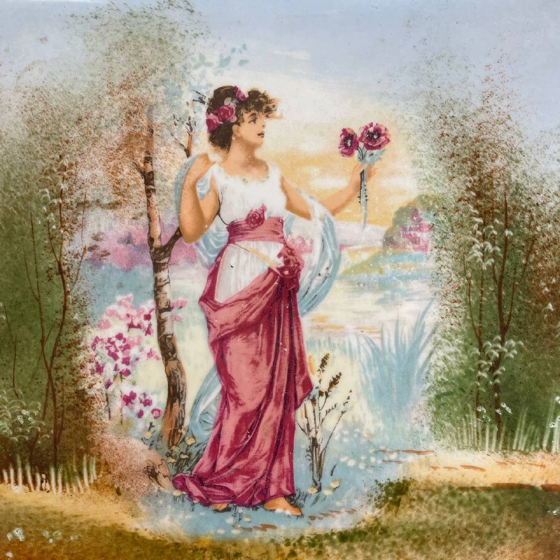 Поднос антикварный Limoges начала XX века , Франция. Роспись по фарфору. Размер 15х25 см.