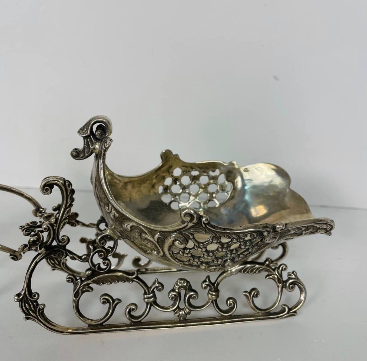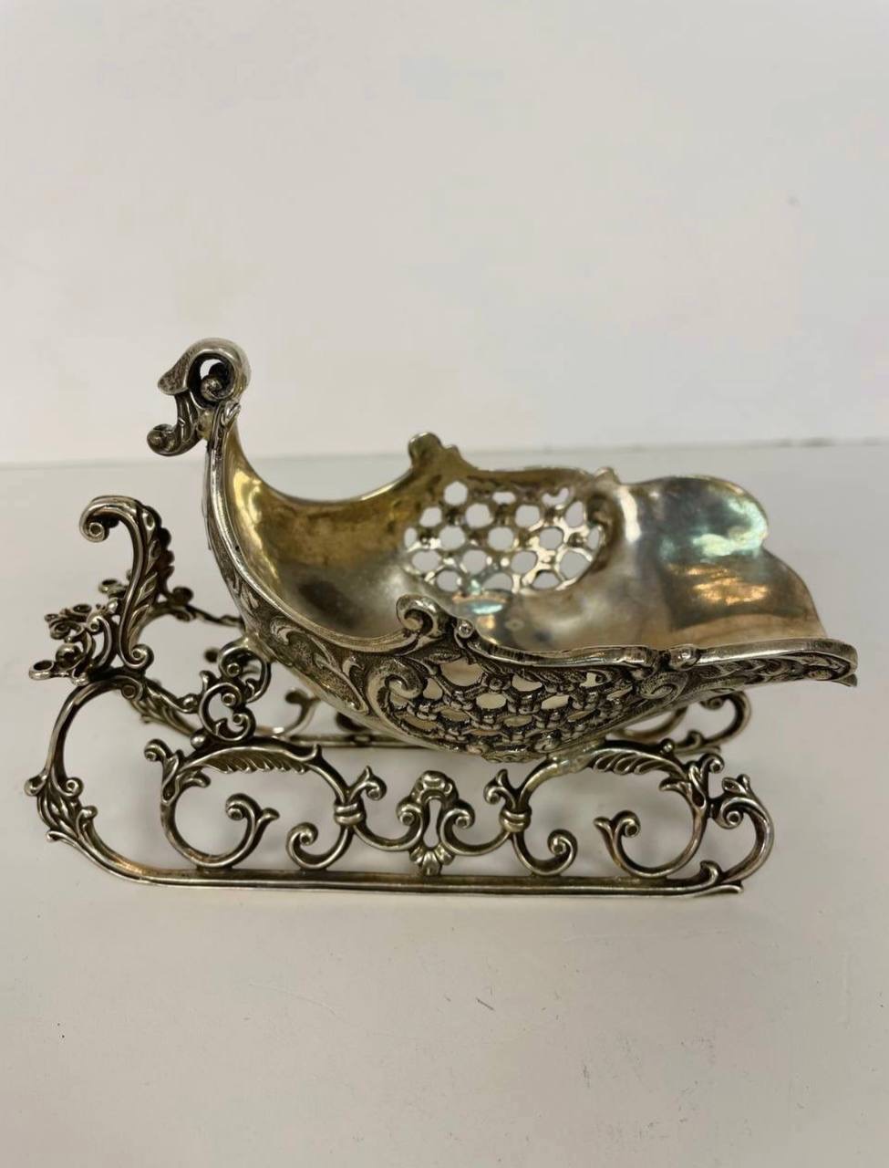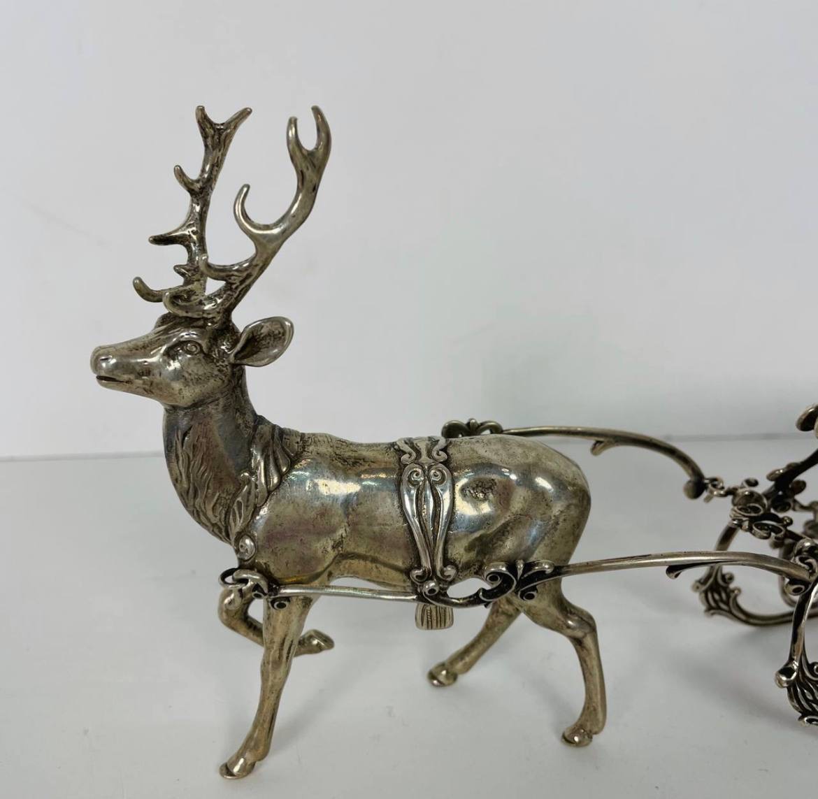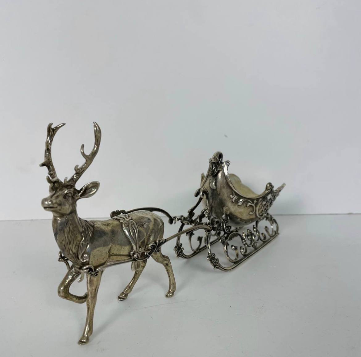 Серебряная декоративная скульптура "Рождественский олень с санями"