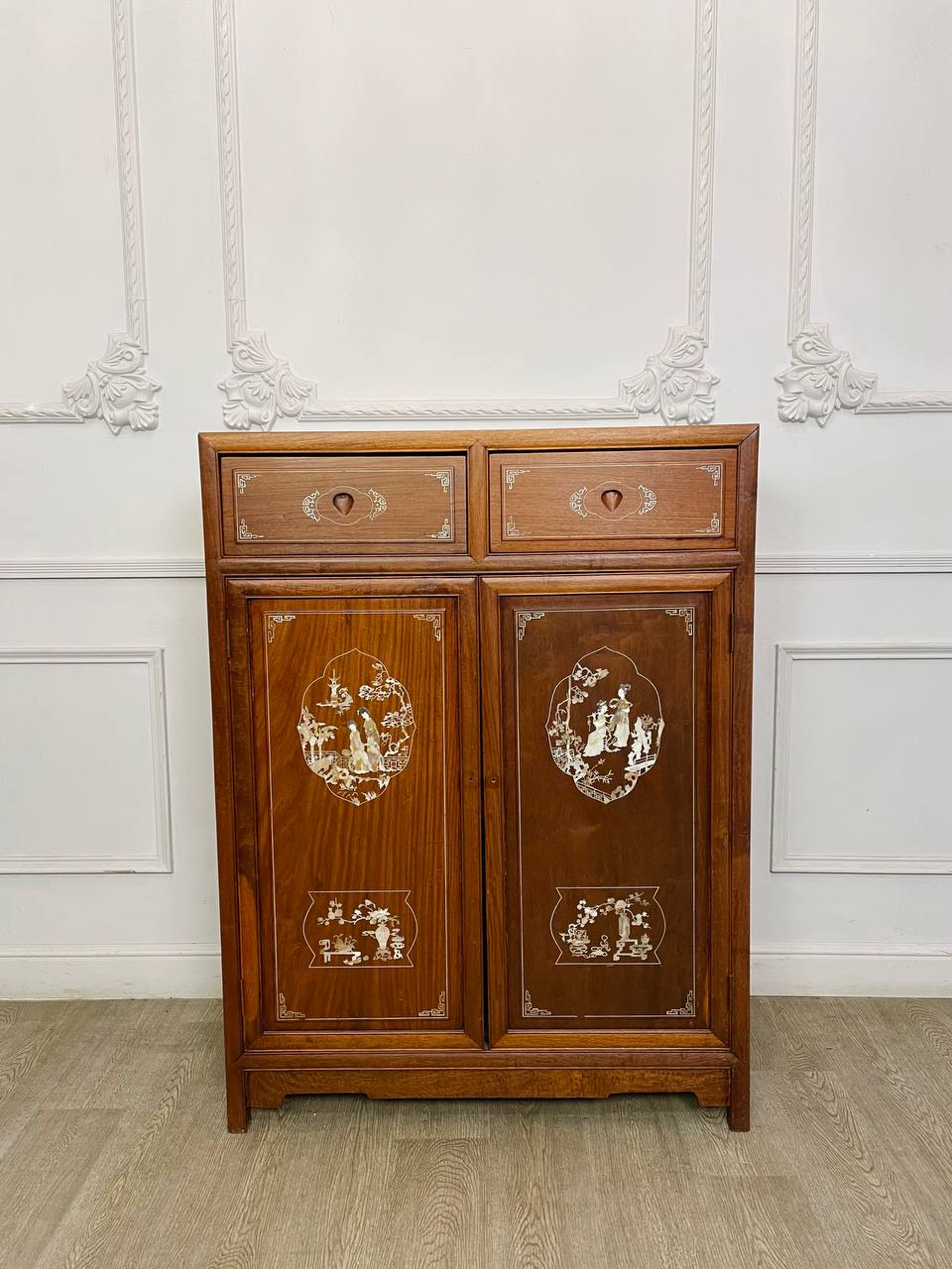 Шкаф в стиле Шинуазри, Китай, начало XX века. Выполнен из красного дерева и натурального перламутра. Размер 91х46х122h см.
