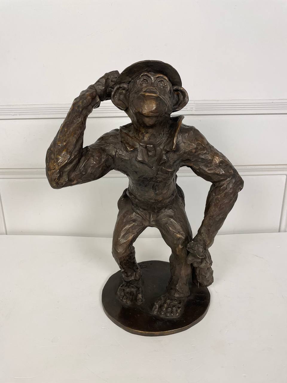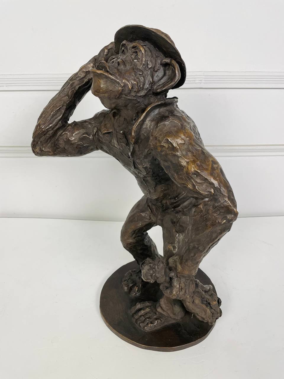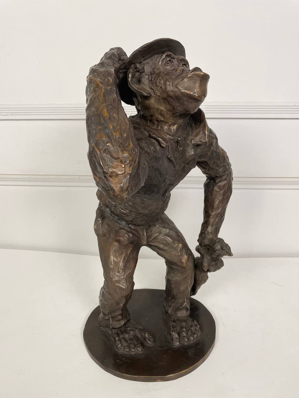 Авторская скульптура обезьянки, в исполнении Павлова Юрия Викторовича. Художественное литье, бронза, патина. Россия, 2015 г. Павлов Ю.В. - скульптор известный лишь небольшому кругу ценителей искусства. В основном трудился с изделиями под заказ, из-за чего большинство его работ производились в единственном экземпляре. Несколько творений скульптора выставлены в Центральном Парке Культуры. Размер 38х32х54h см.