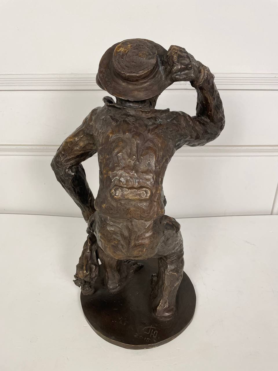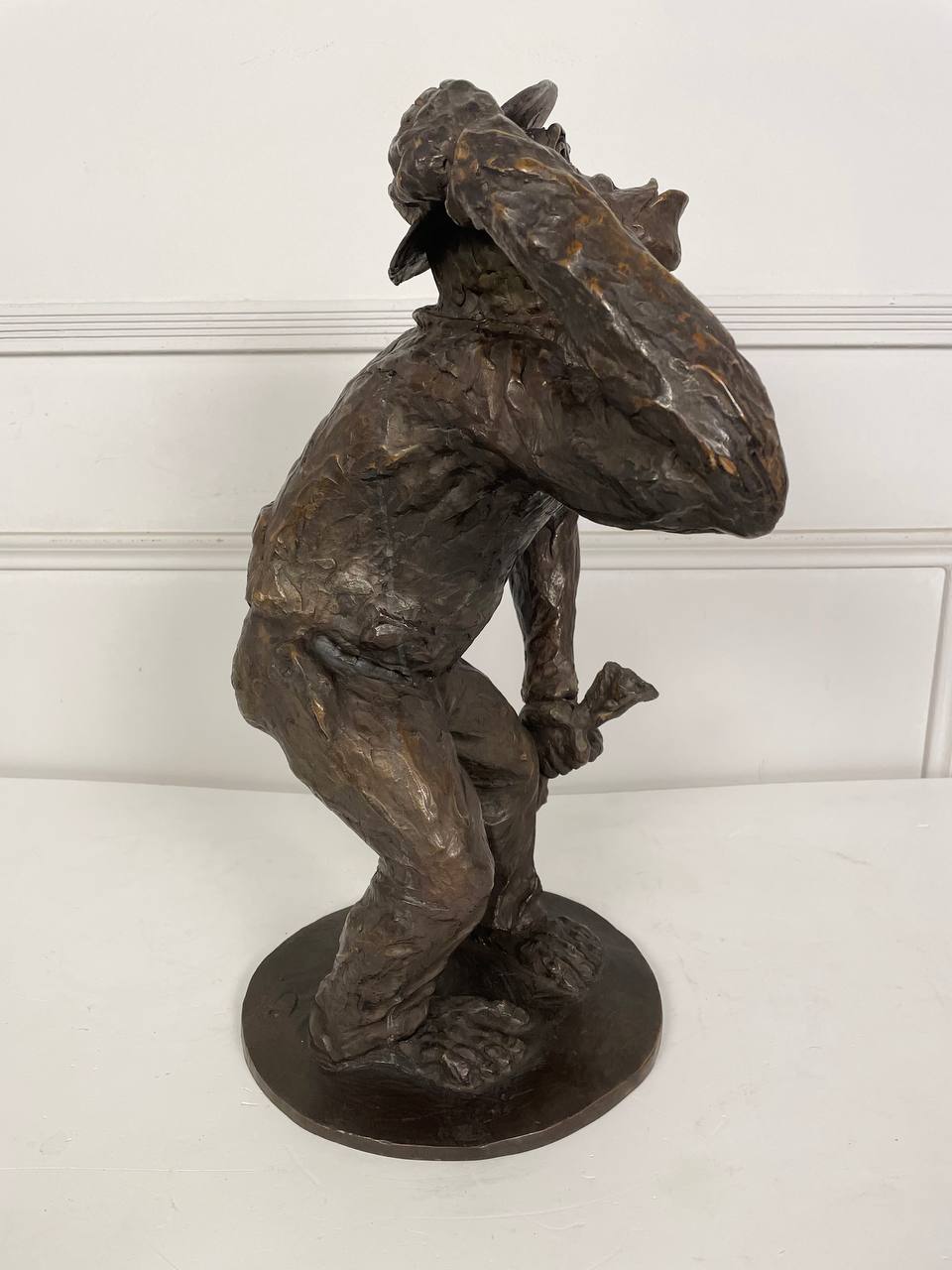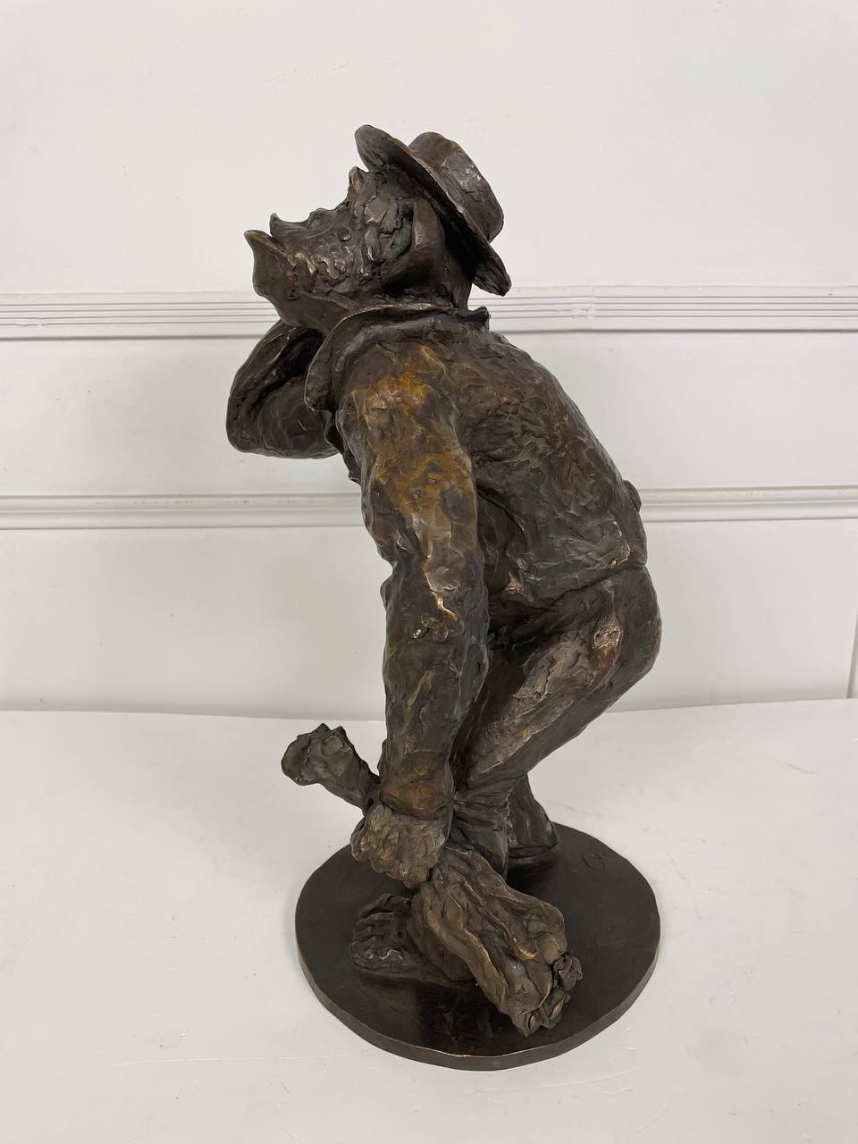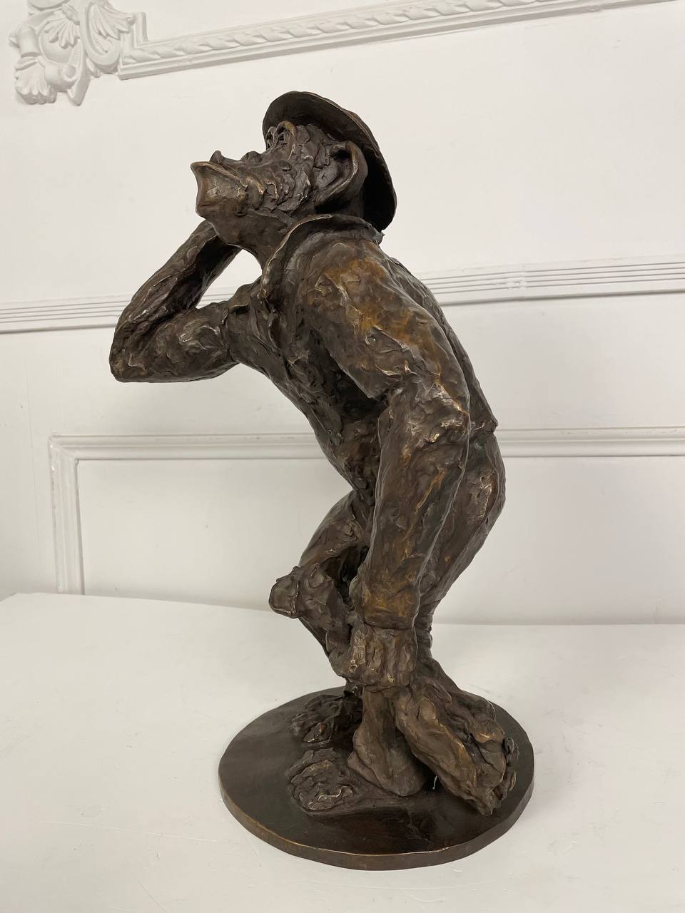 Авторская скульптура обезьянки, в исполнении Павлова Юрия Викторовича. Художественное литье, бронза, патина. Россия, 2015 г. Павлов Ю.В. - скульптор известный лишь небольшому кругу ценителей искусства. В основном трудился с изделиями под заказ, из-за чего большинство его работ производились в единственном экземпляре. Несколько творений скульптора выставлены в Центральном Парке Культуры. Размер 38х32х54h см.