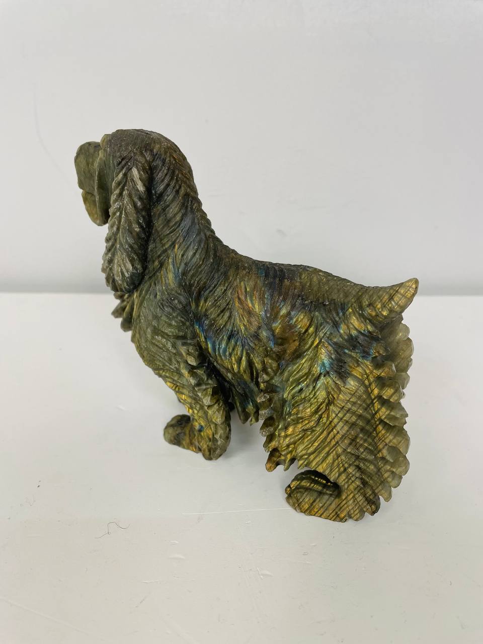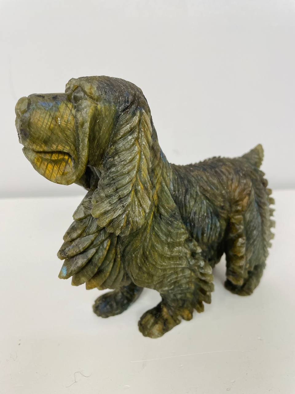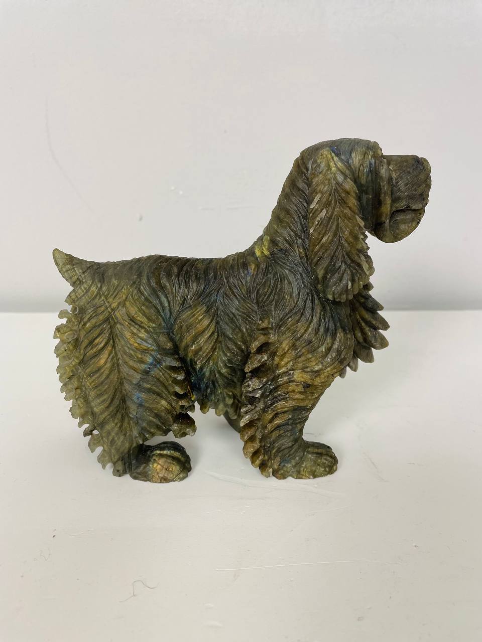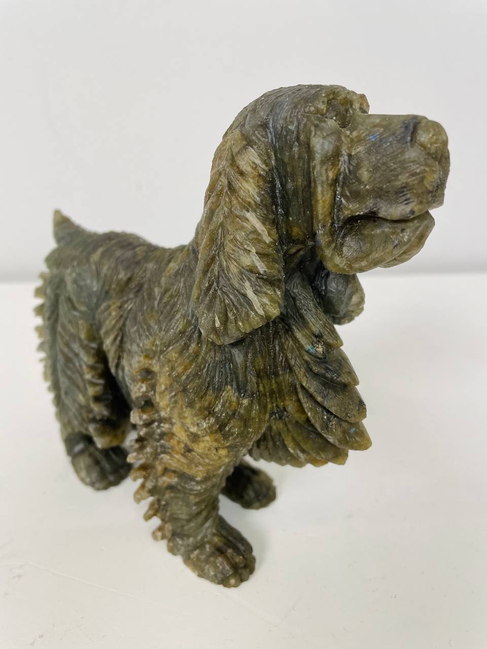 Скульптура собаки «Спаниель». Антикварная скульптура собаки начала XX века, Китай. Выполнена из камня с перламутровым сиянием. Длина 17 см. Ширина 4 см. Высота 14 см.