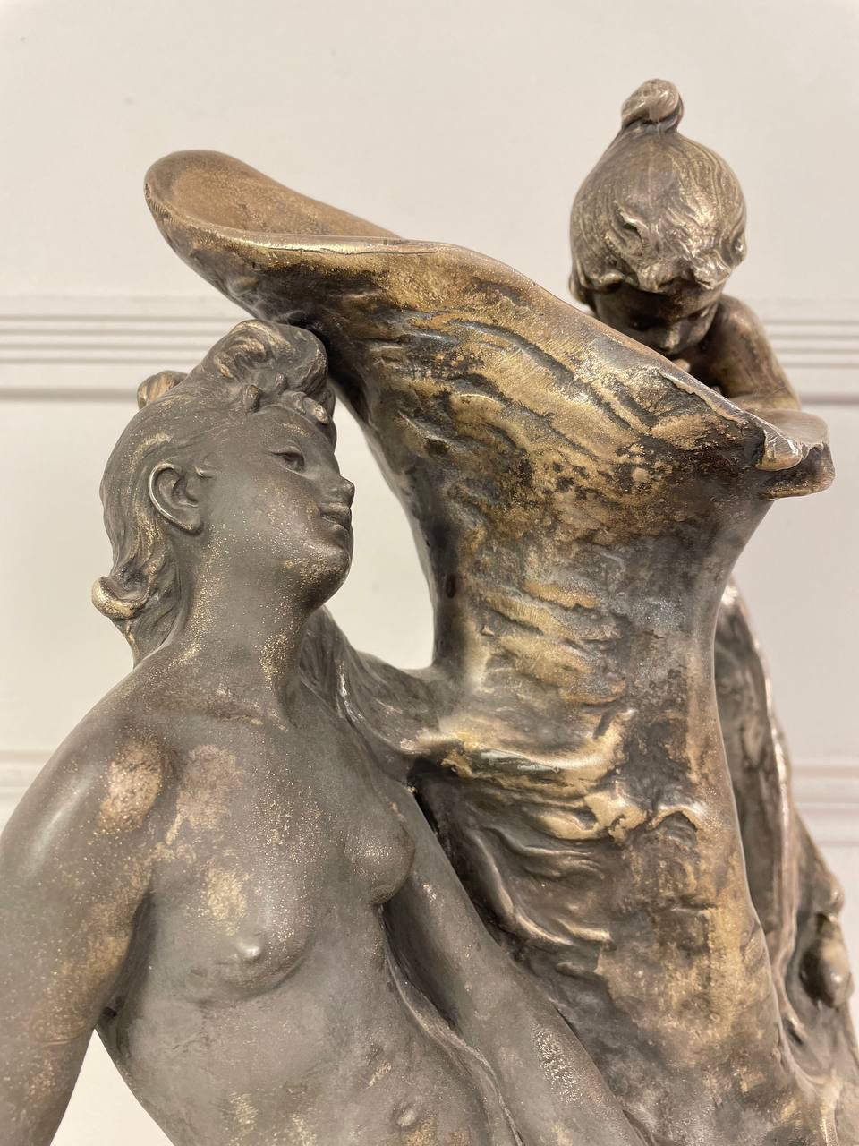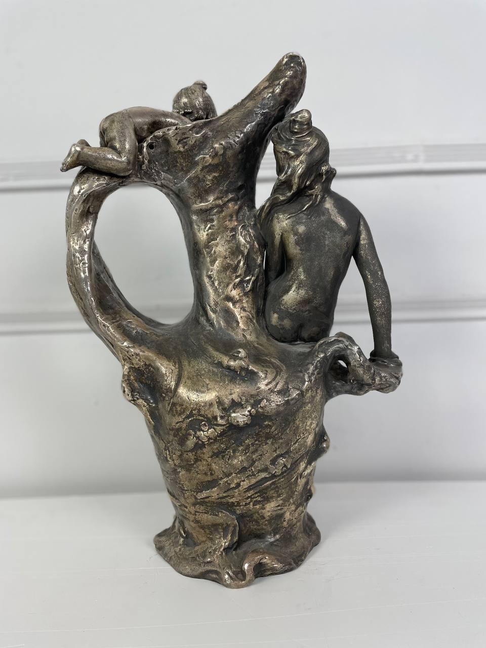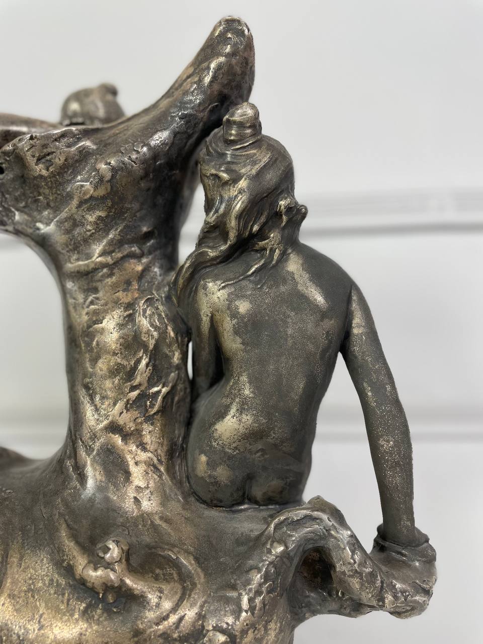 Скульптура в стиле Ар-Нуво, 1900-1920 гг, Франция. Серебрение. Стоит подпись скульптора. Размер 30х25х44h см.
