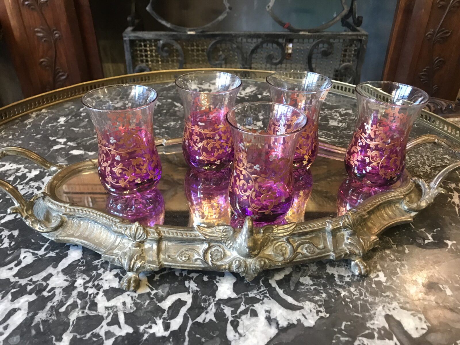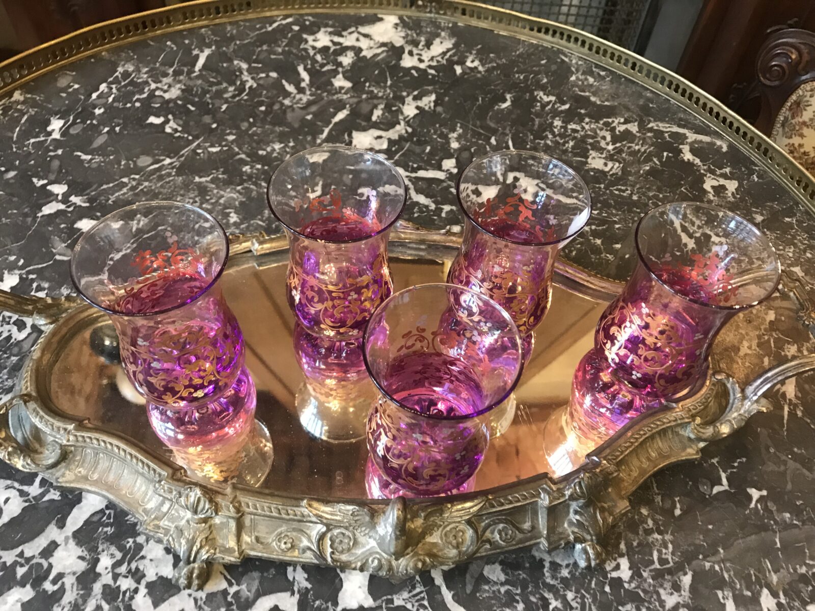 Стаканчики из цветного стекла с ручной росписью, вторая половина XX века.