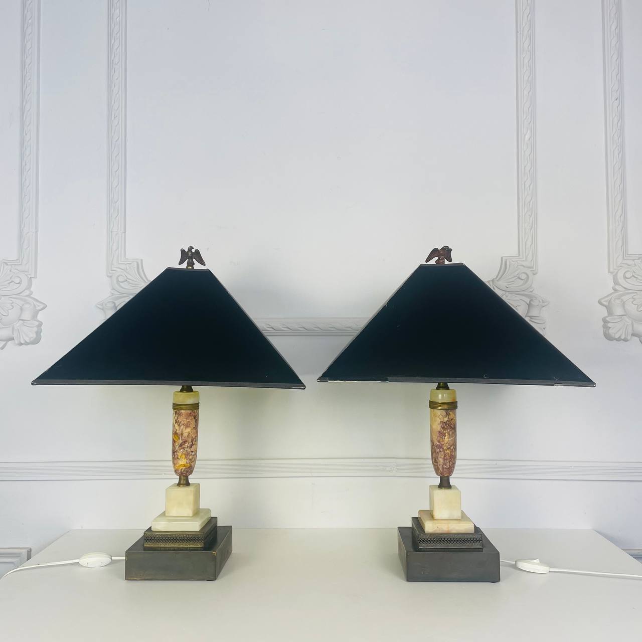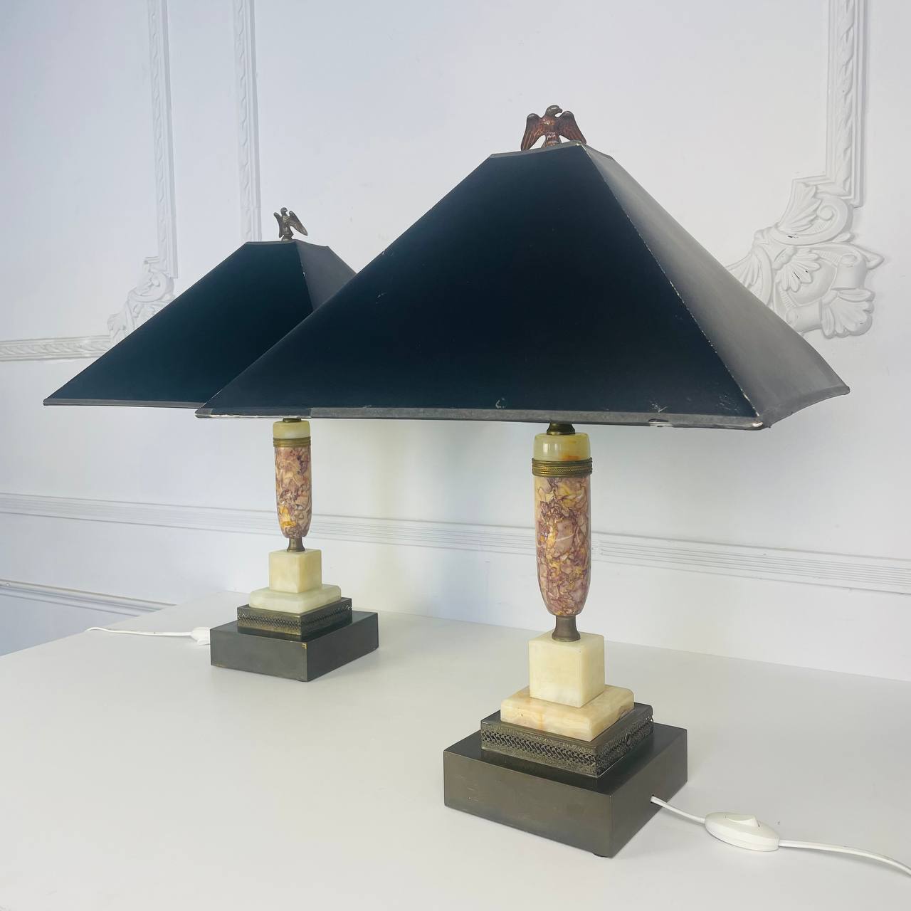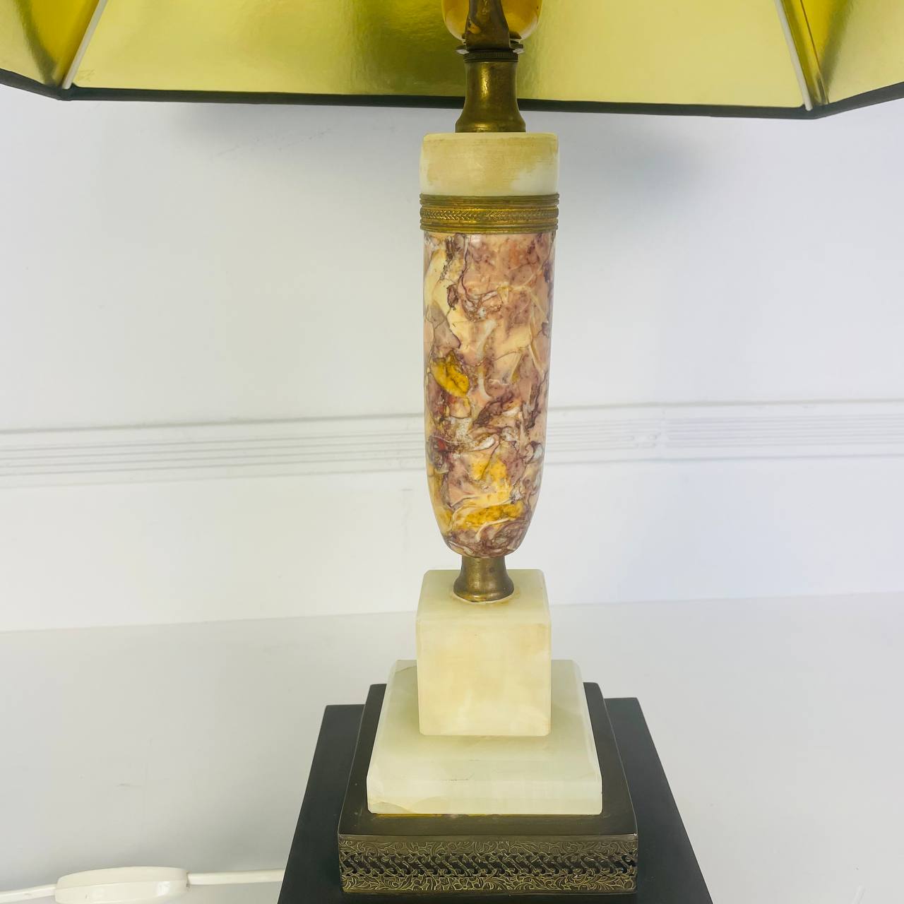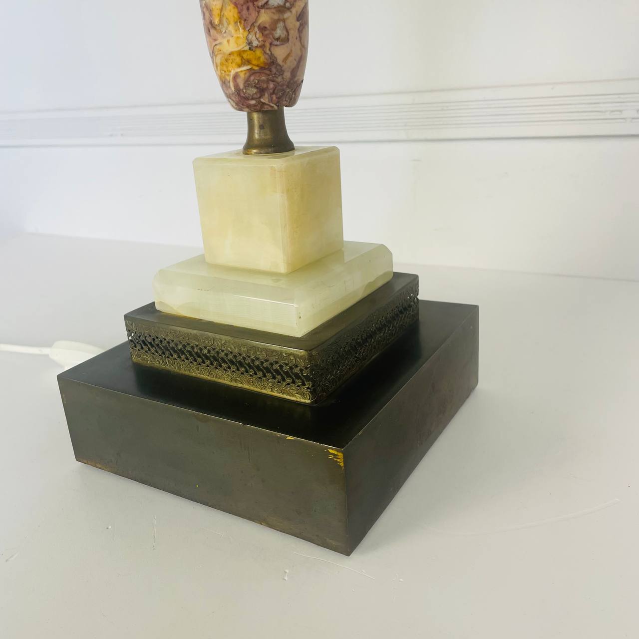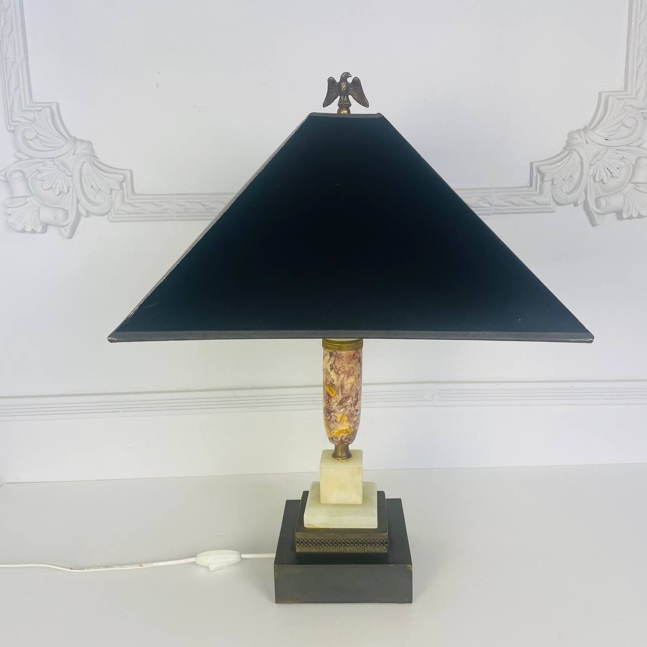 Старинная настольная лампа, первая половина ХХ века, Франция. Бронза, несколько сортов мрамора. Рабочая электрика. Высота 65 см.