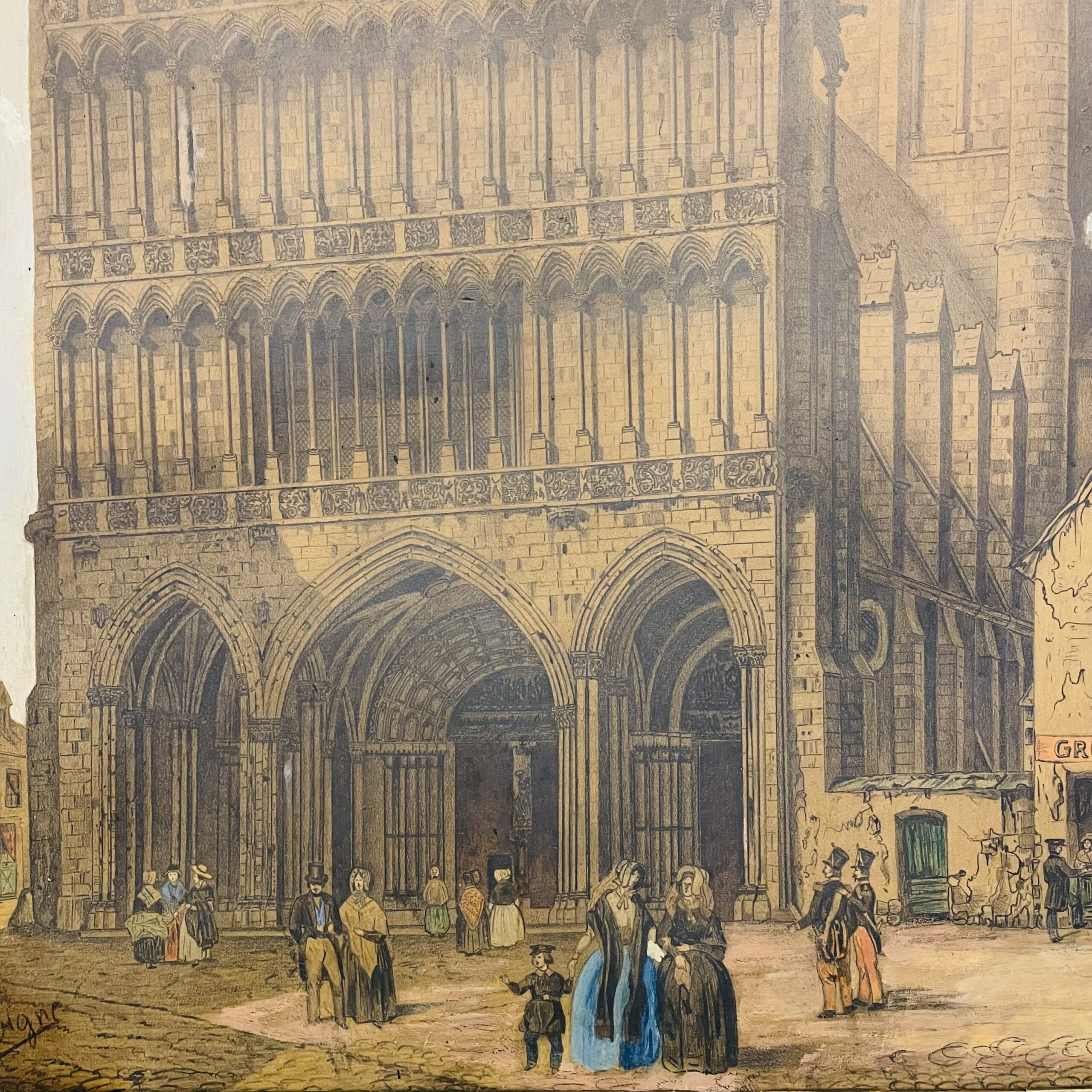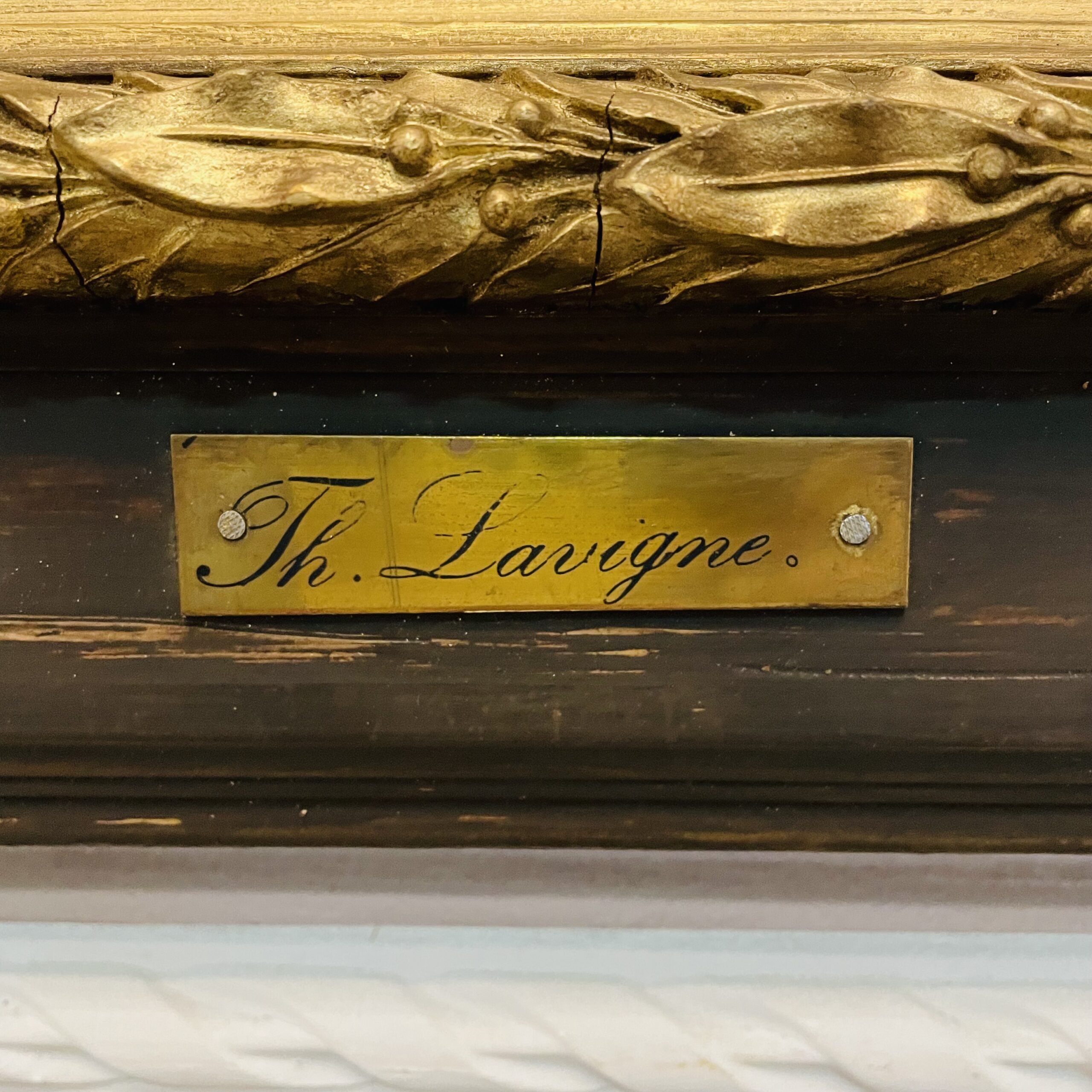 Theodore Lavigne. Городcкой пейзаж, XIX-XX век. Холст, масло. В холст вмонтированы настоящие карманные часы. Оригинальный антикварный багет. Размер: 75х52,5 см.