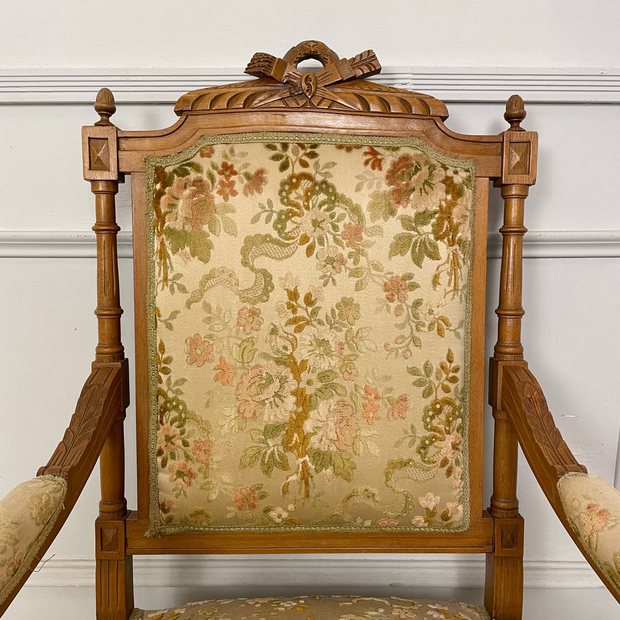 Старинное кресло в стиле Людовика XVI первой половины XX века, Бельгия. Выполнено из массива ореха. Размер 60х60х102h см