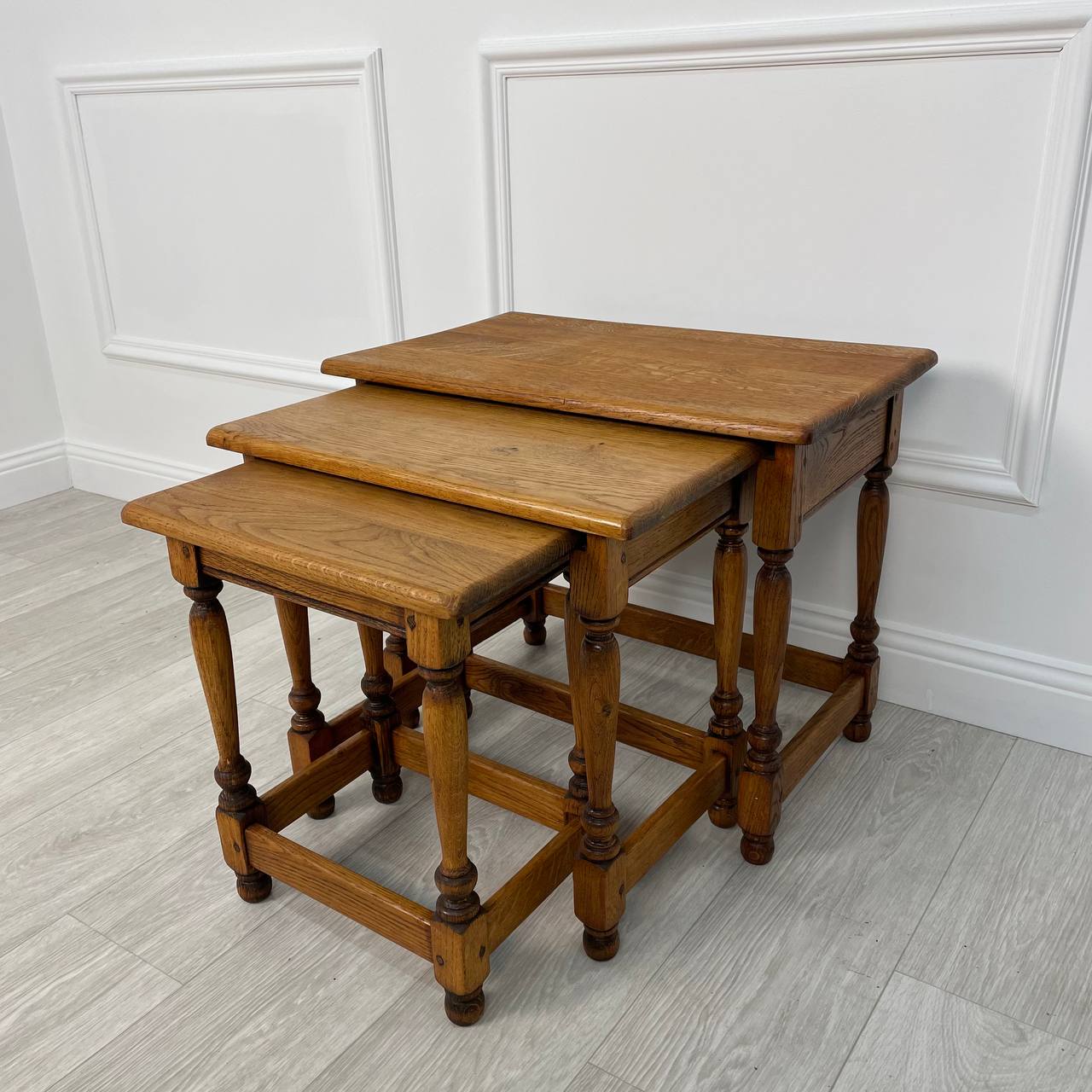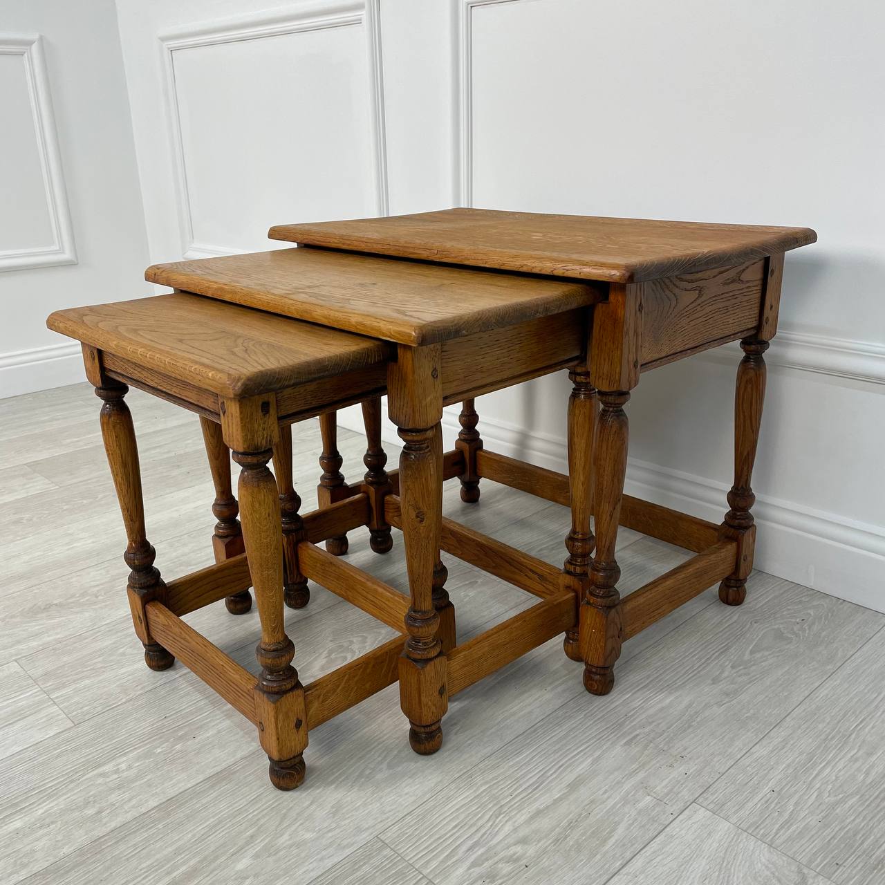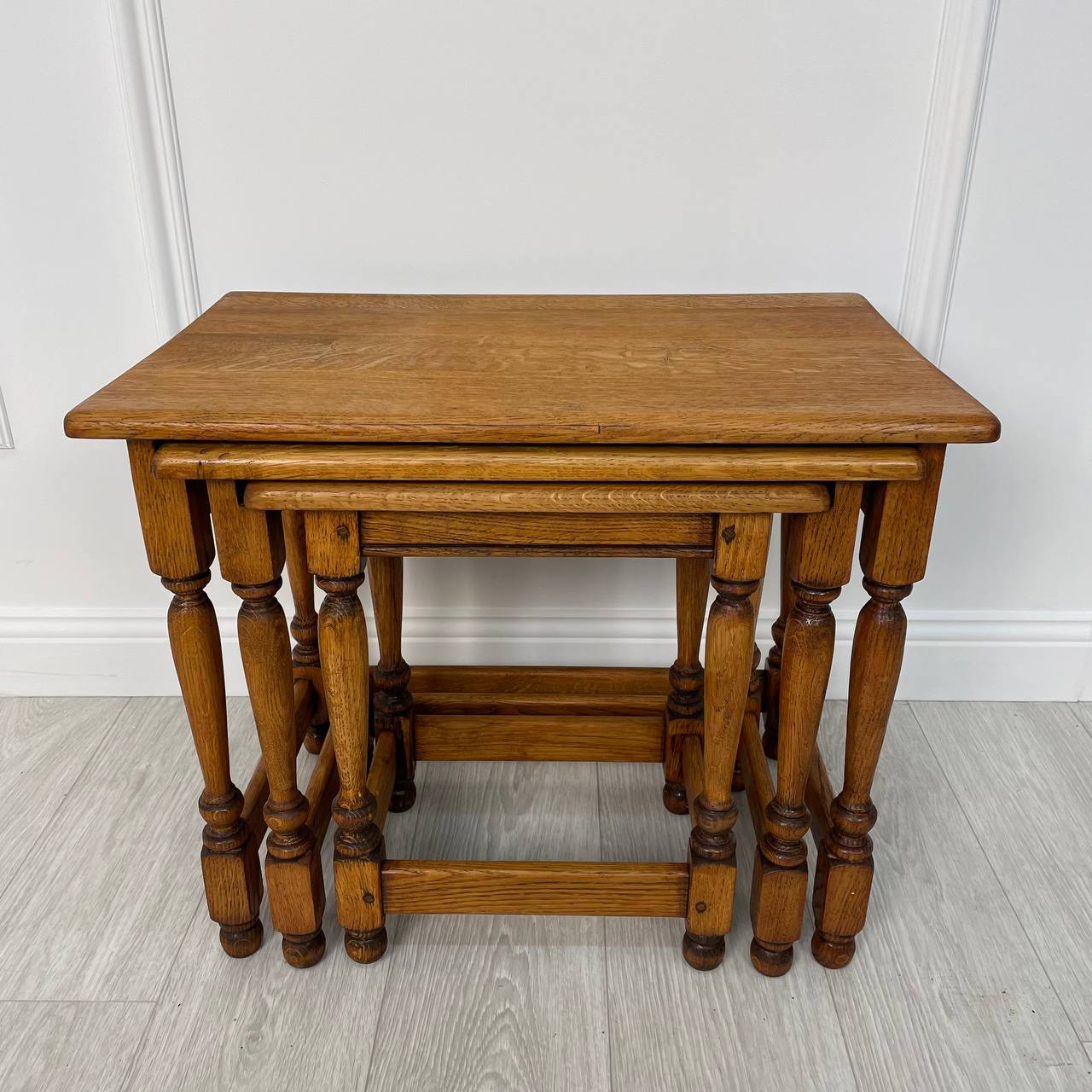Столики «Матрешка» первой половины XX века, Бельгия. Выполнены из массива дуба. Размер большого столика 55х35х45h см