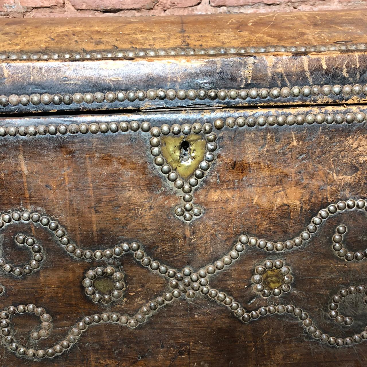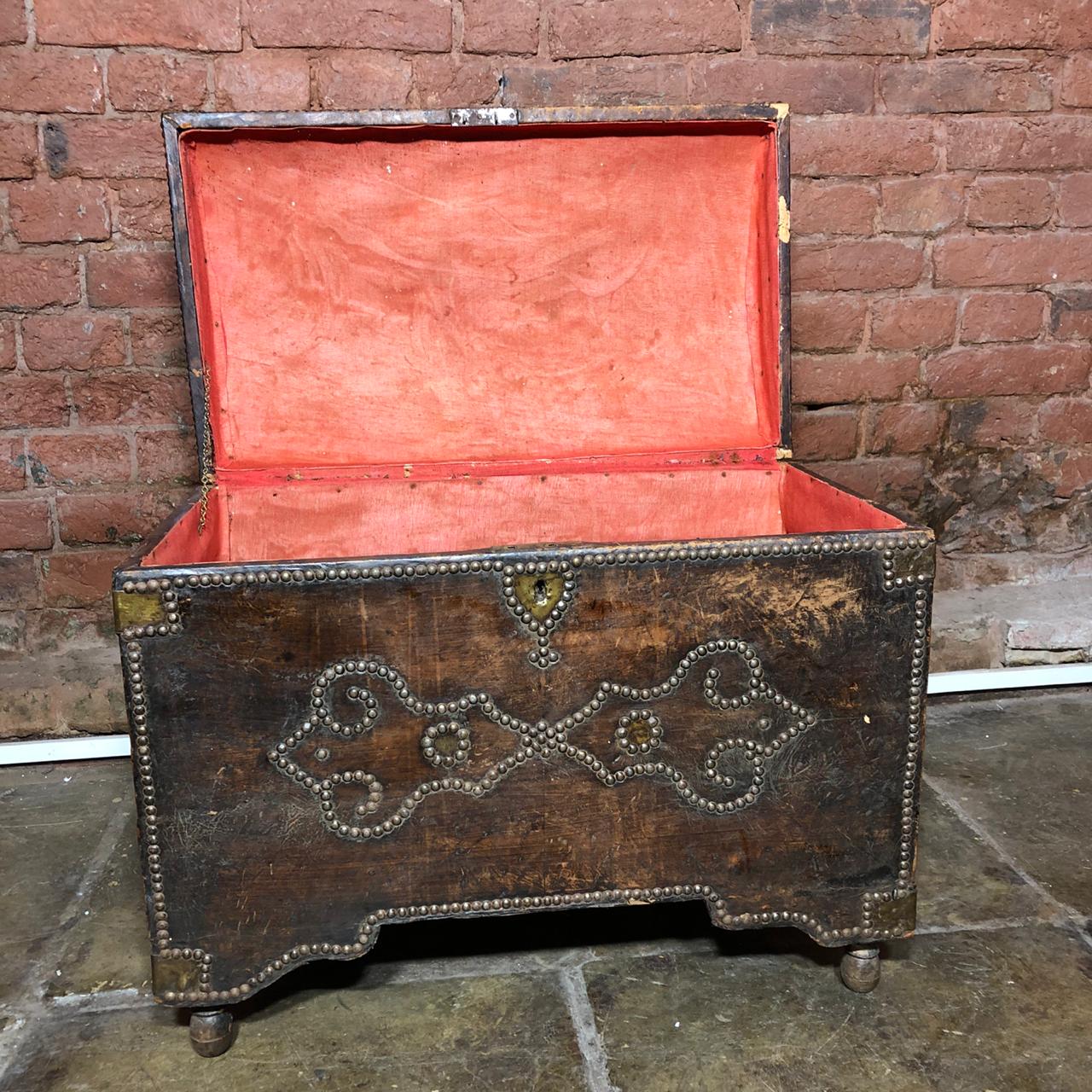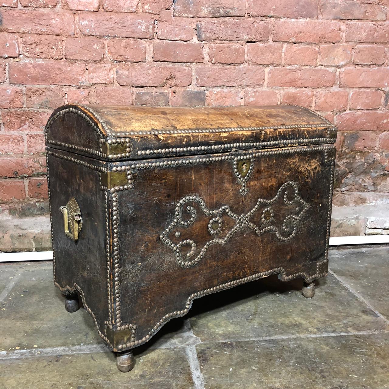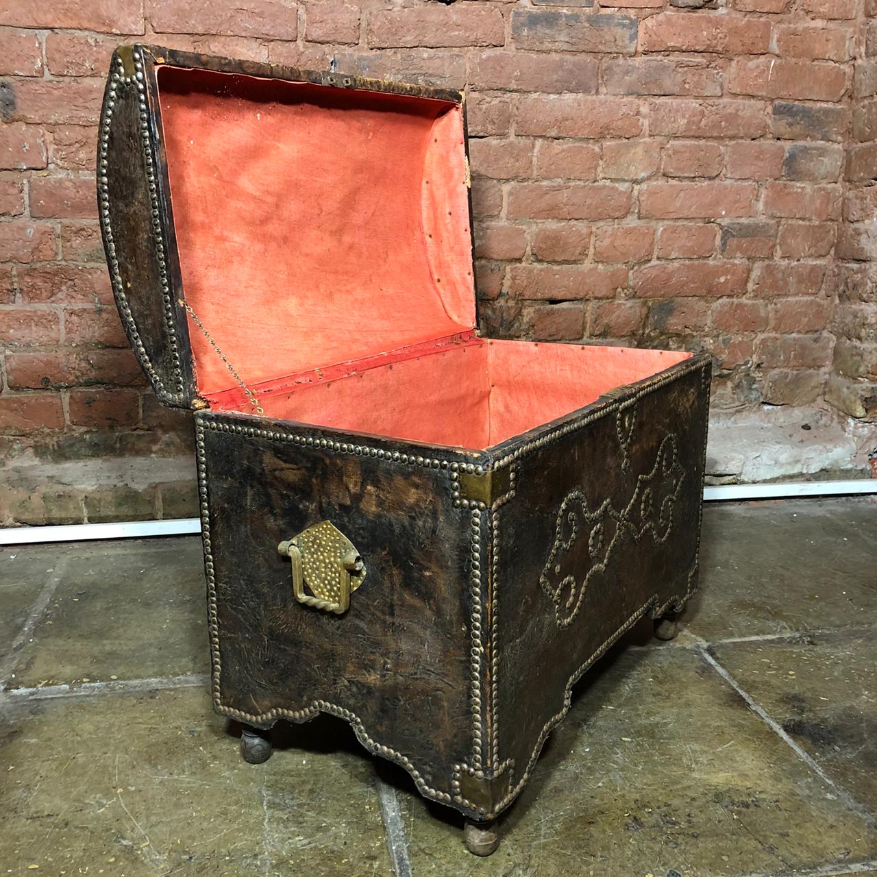 Сундук антикварный первой половины XX века, Европа. Выполнен из дерева, обтянут оригинальной, натуральной кожей. Оригинальная латунная фурнитура. Размер 66х39х55h см.