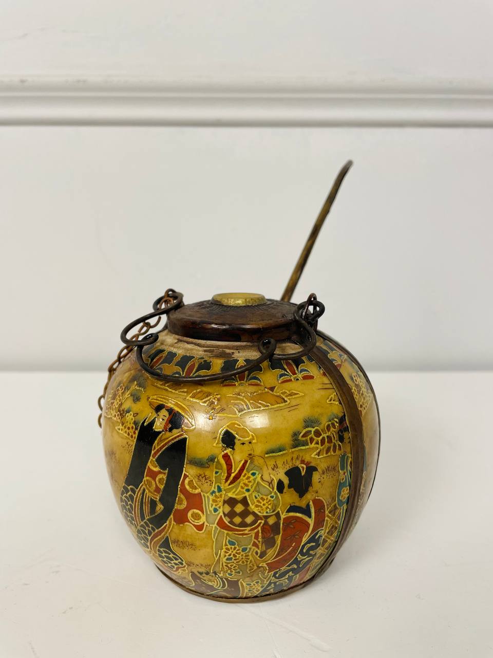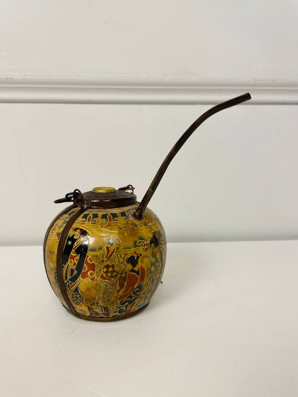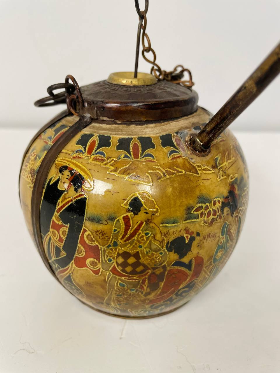 Трубка курительная. Антикварная курительная трубка XIX века, Китай. Выполнена из керамики с ручной росписью и металла. Длина 21 см. Ширина 10 см. Высота 18 см.