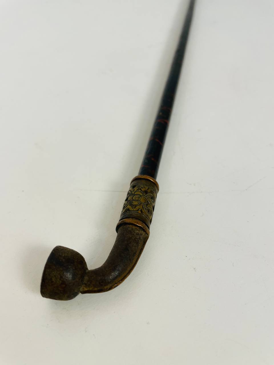 Трубка курительная. Антикварная курительная трубка начала XX века, Китай. Выполнена из дерева и металла. Длина 55 см. Ширина 2 см. Высота 3 см.