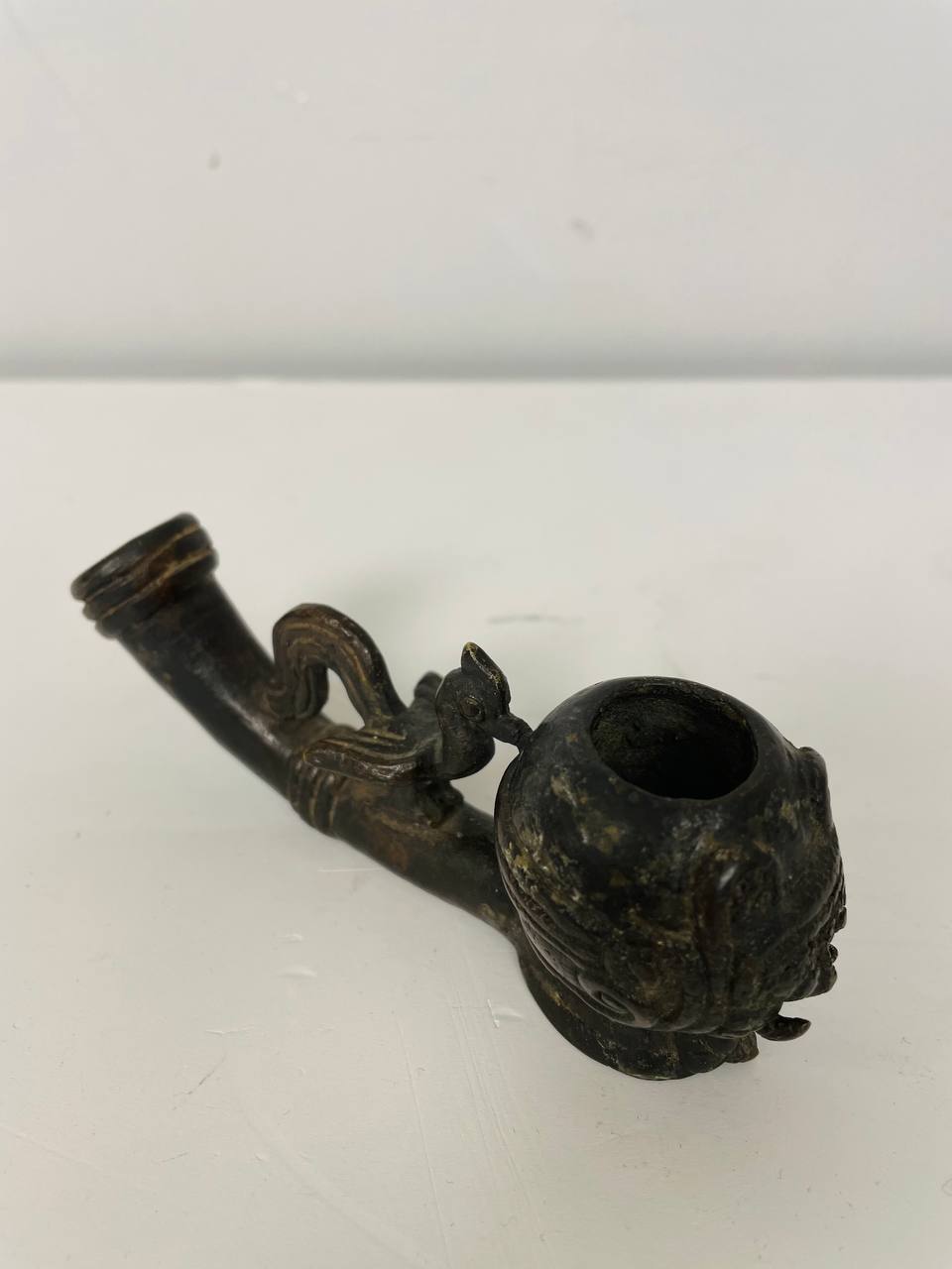 Трубка курительная. Антикварная курительная трубка начала XX века, Китай. Выполнена из металла. Длина 12 см. Ширина 4 см. Высота 5 см.