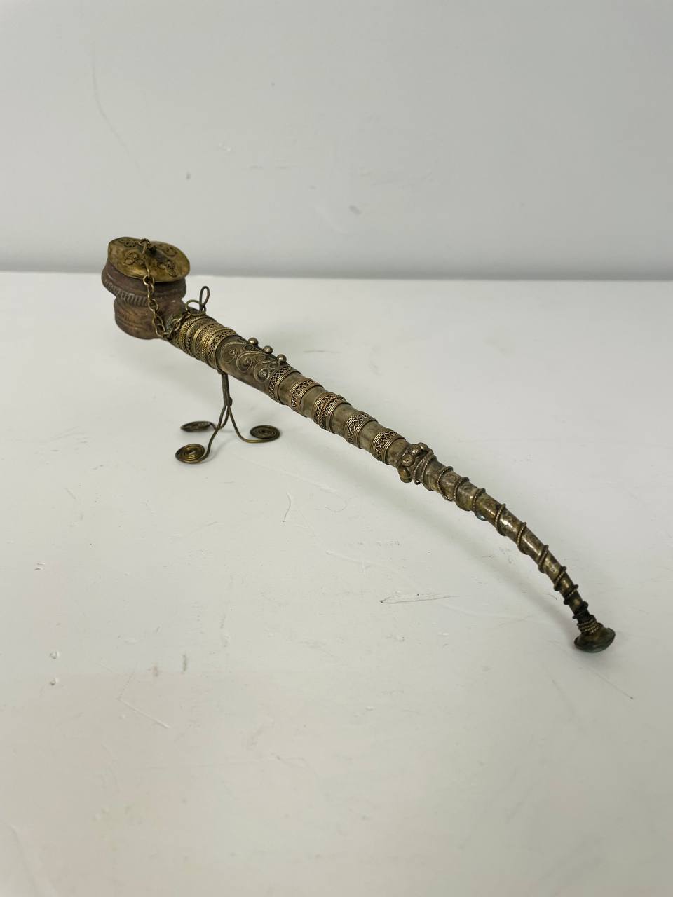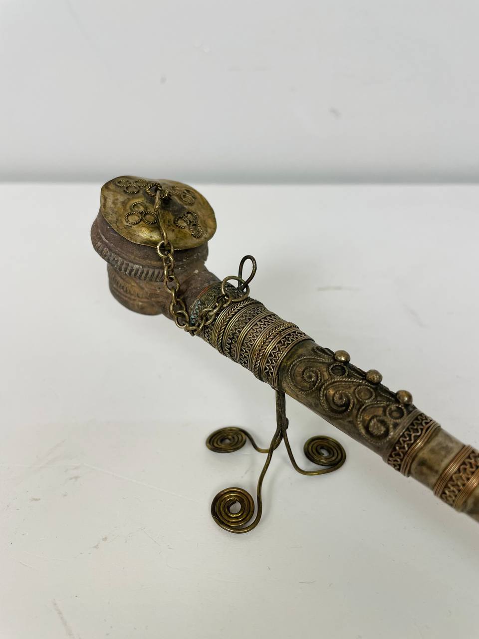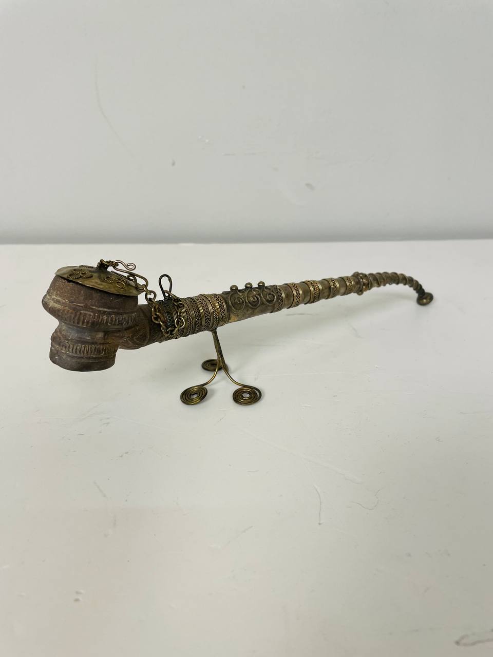 Трубка курительная. Антикварная курительная трубка начала XX века, Китай. Выполнена из металла в технике филигрань. Ручная работа. Длина 25 см. Ширина 4 см. Высота 7 см.