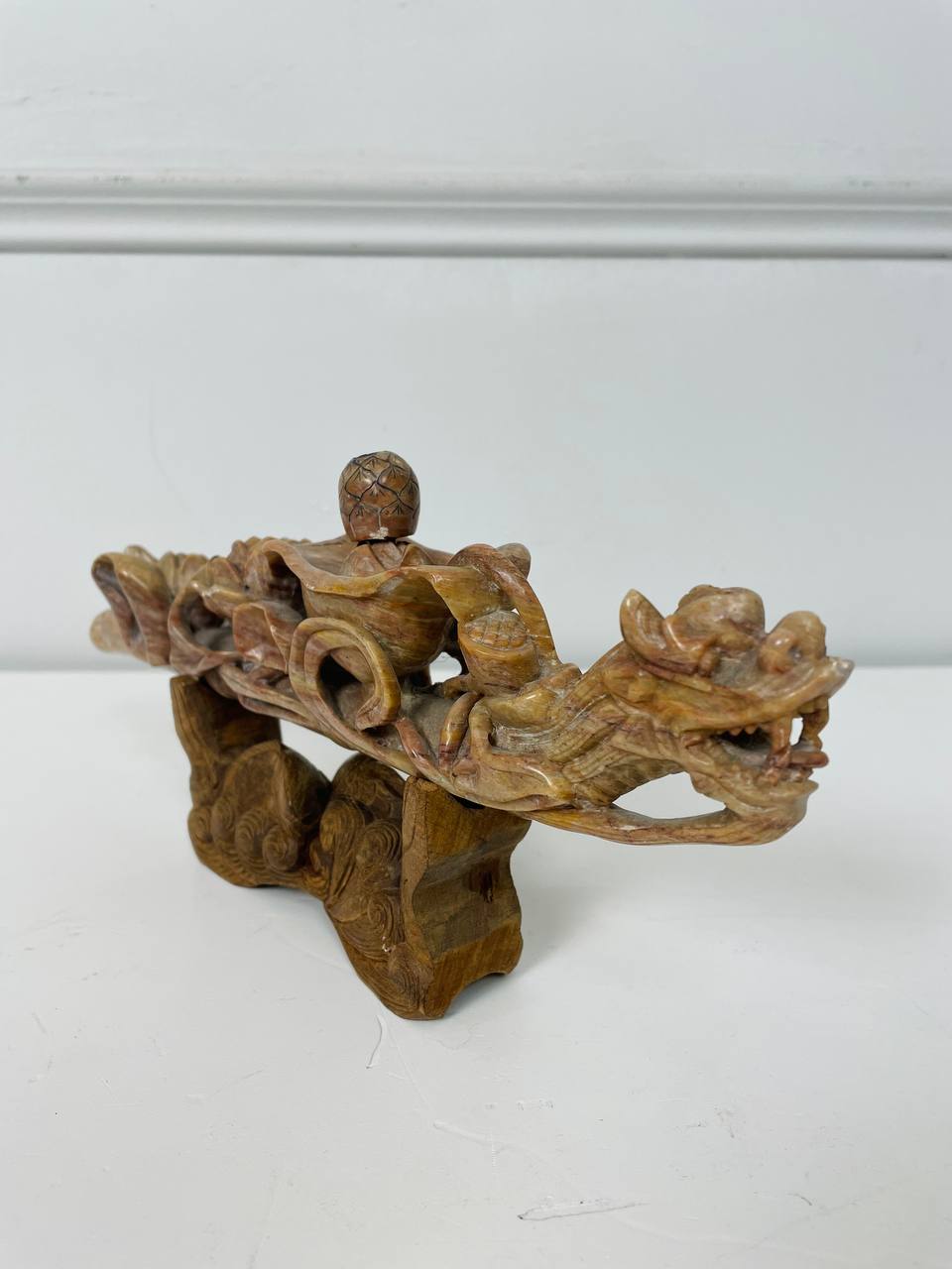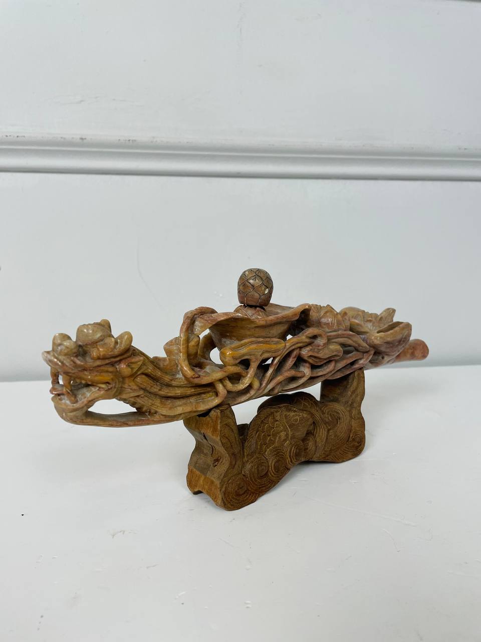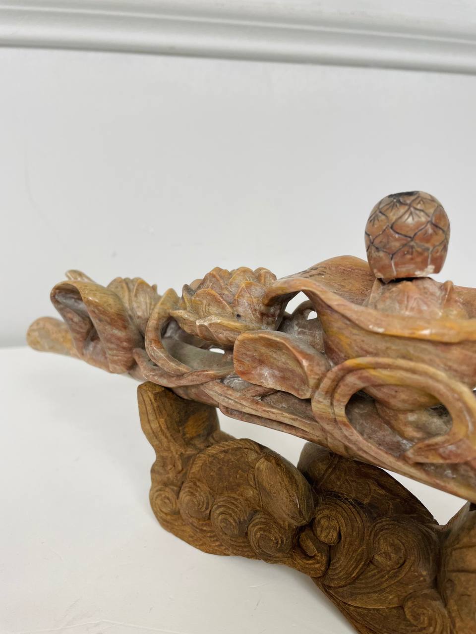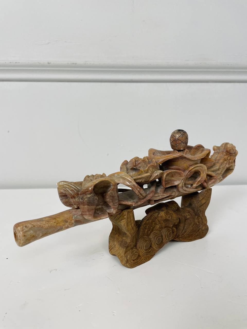 Трубка курительная. Антикварная курительная трубка начала XX века, Китай. Выполнена из розового камня, предположительно мрамор. Резьба ручной работы. Ш 30 см. Г 4,5 см. В 13 см.