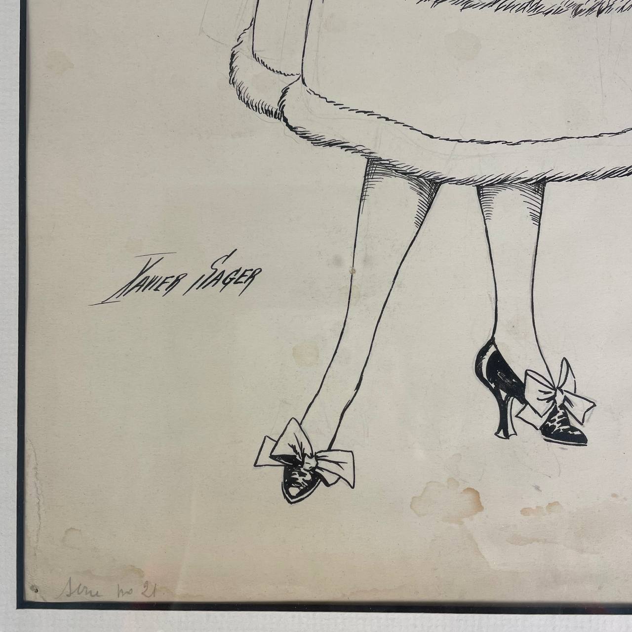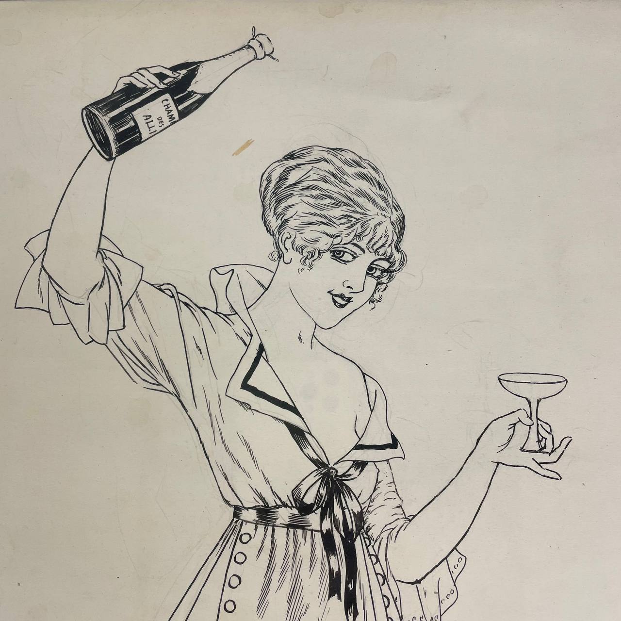 Тушь на бумаге «Девушка с шампанским»