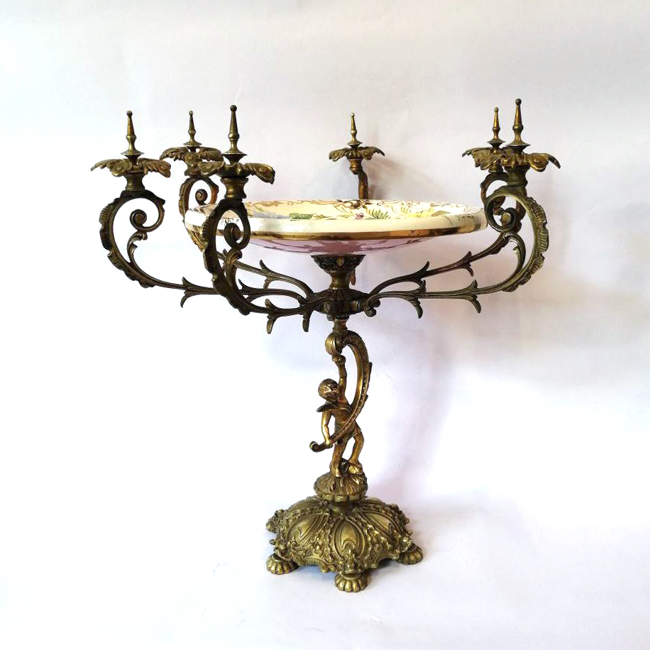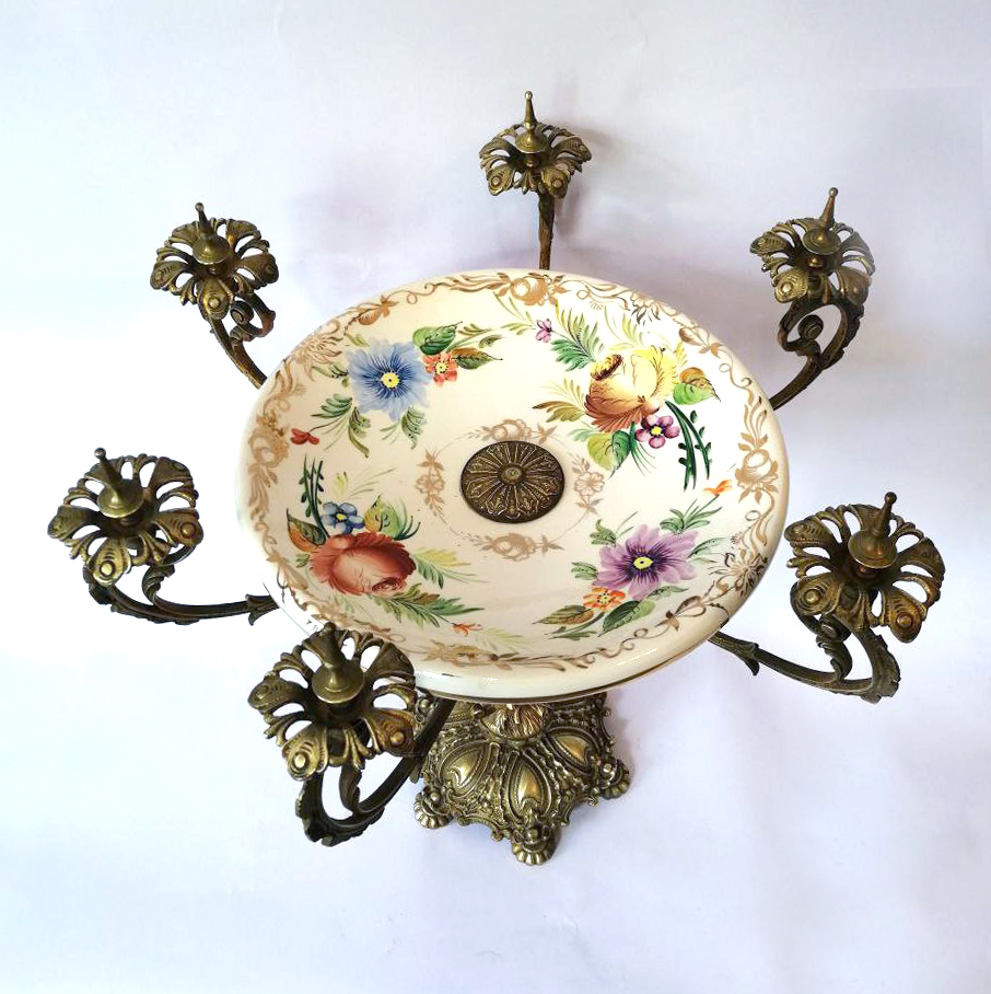 Большая антикварная Ваза середины XX века Франция. Выполнена из фарфора ручной росписи и бронзы/латуни. Диаметр 48 см. Диаметр блюда 32 см. Высота 50 см.
