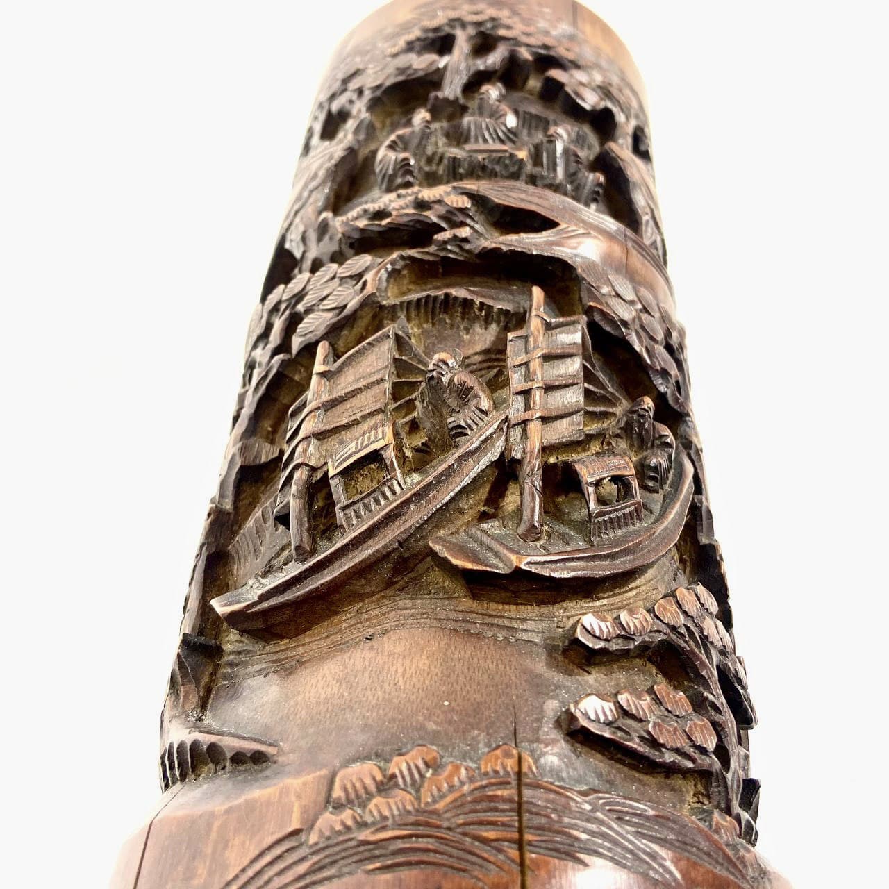 Декоративная антикварная ваза, выполненная из бамбука в традиционной китайской технике резьбы, 1910-1930 гг., Китай. Ручная работа. Размер 12 х 27h см.