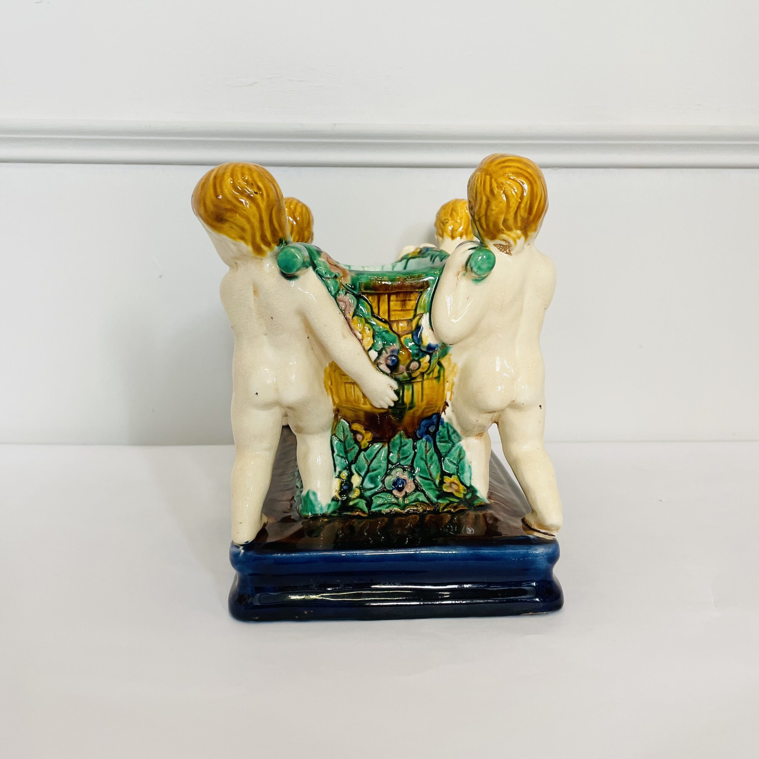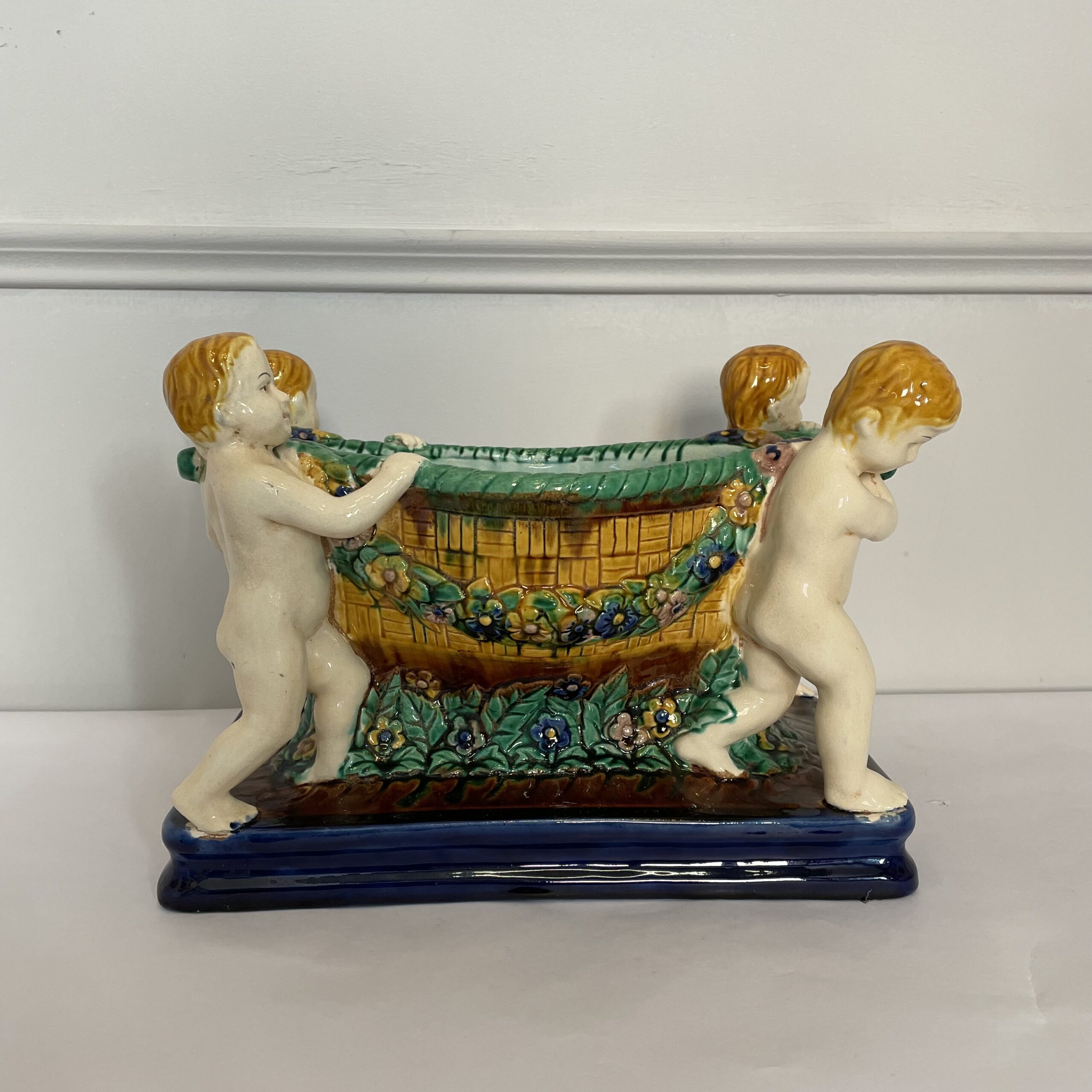 Ваза-кашпо начала XX века, Европа. Фаянс, майолика, лепка. Размер 30х16х22h см.