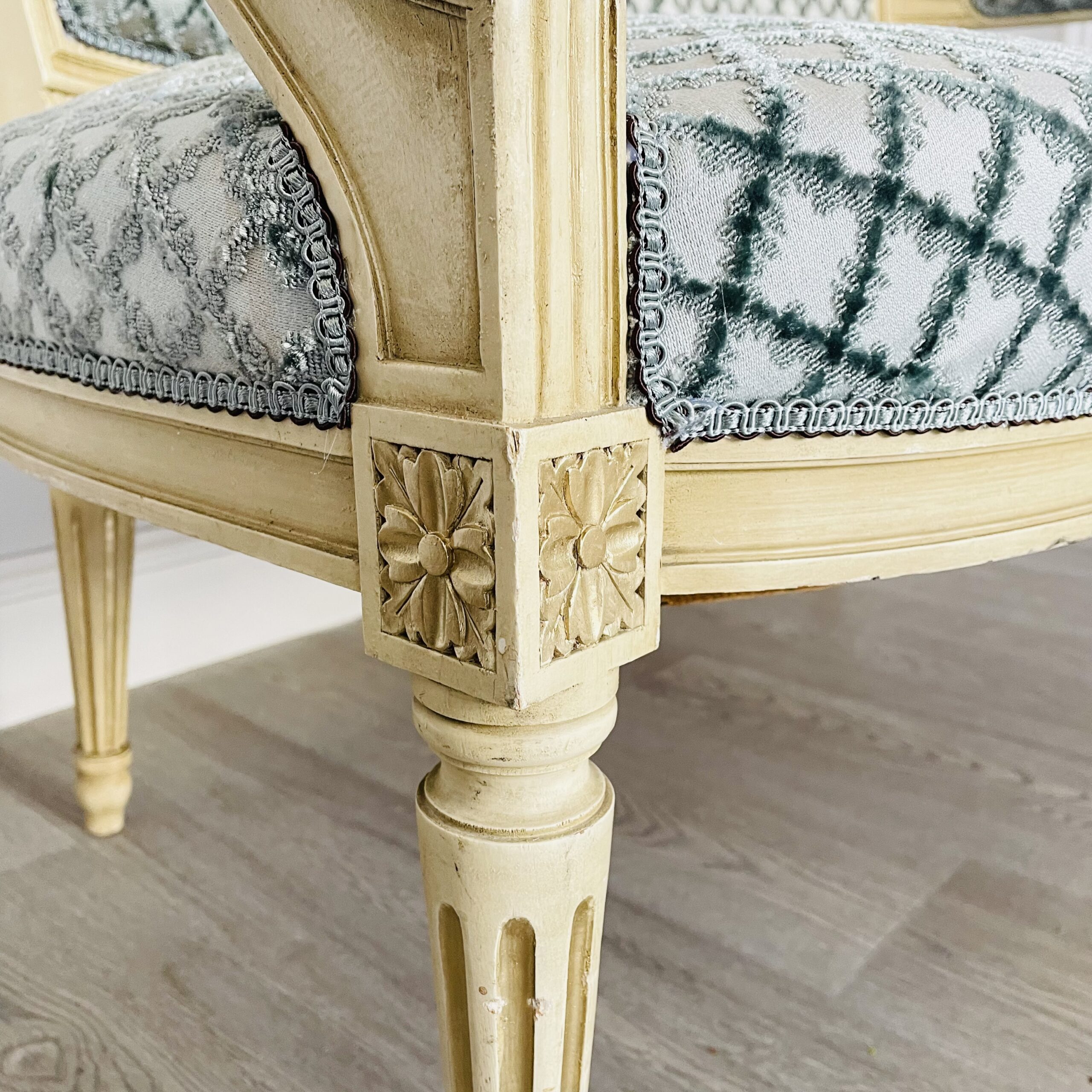 Серо-голубой велюр с ромбами для перетяжки мебели. Произведен в 1950-е годы во Франции. Размер: 130х 420 см. Цена за метр.