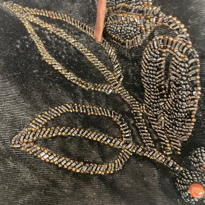 Велюровая винтажная сумочка с ручной вышивкой бисером и натуральными камнями.