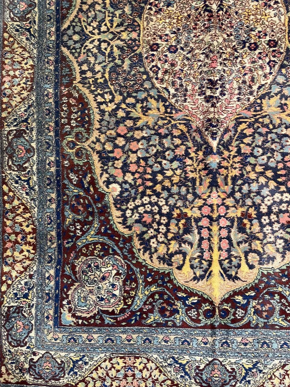 Винтажный ковер в восточном стиле, Биджар, Иран. Ориентировочно 1970-1980 гг. Выполнен из шерсти 100%. Аутентичные орнаменты в восточном стиле. Биджарские ковры являются одними из наиболее колоритных среди персидских изделий и отличаются строгой торжественностью дизайна. Эти полотна традиционно изготавливаются из натуральной шерсти. Высочайшая плотность плетения, характерная для биджарских ковров, позволяет создать особенно прочную, комфортную на ощупь поверхность с максимально детализированным, чётким рисунком. Насыщенная цветовая гамма, состоящая из глубоких рубиновых, охристых и багровых.