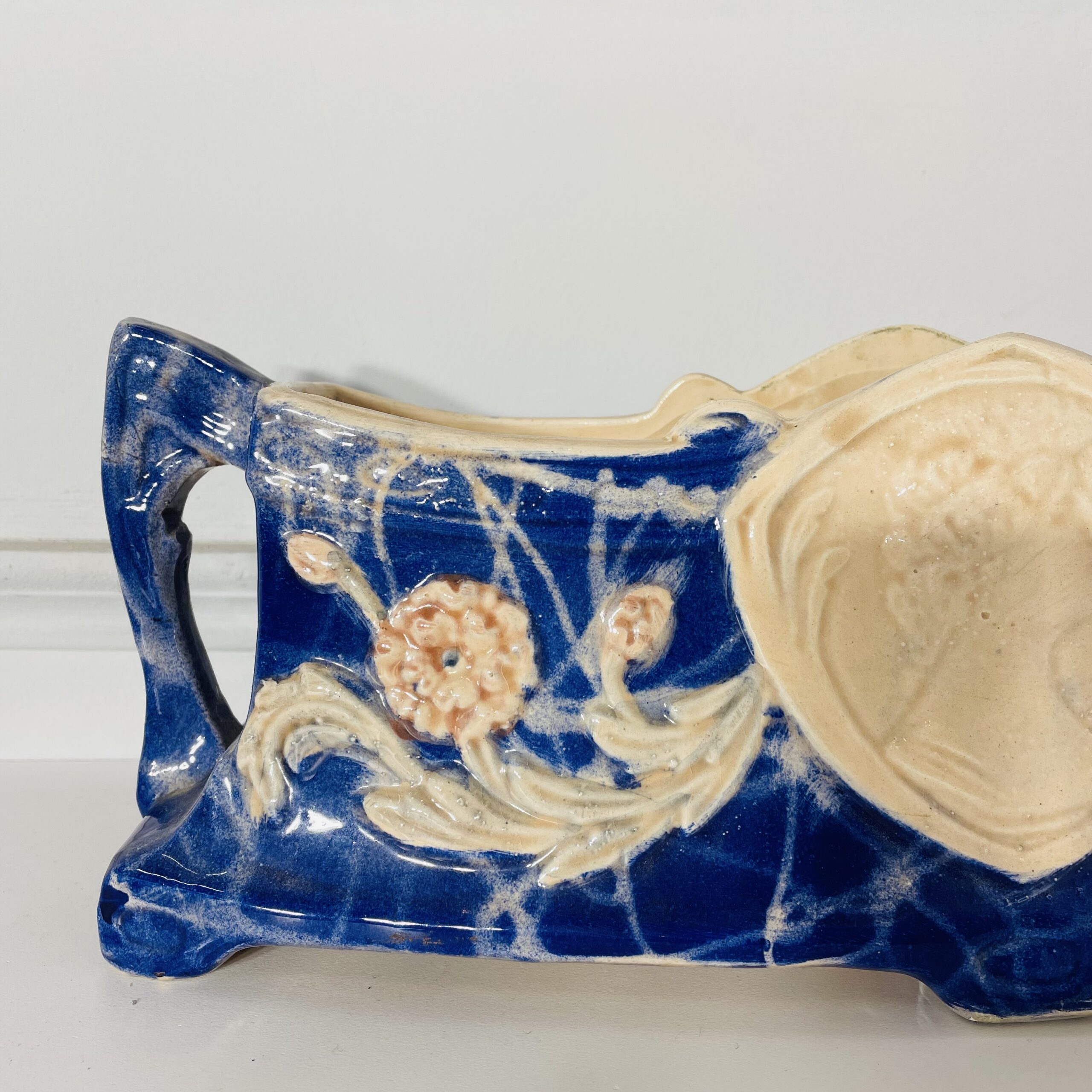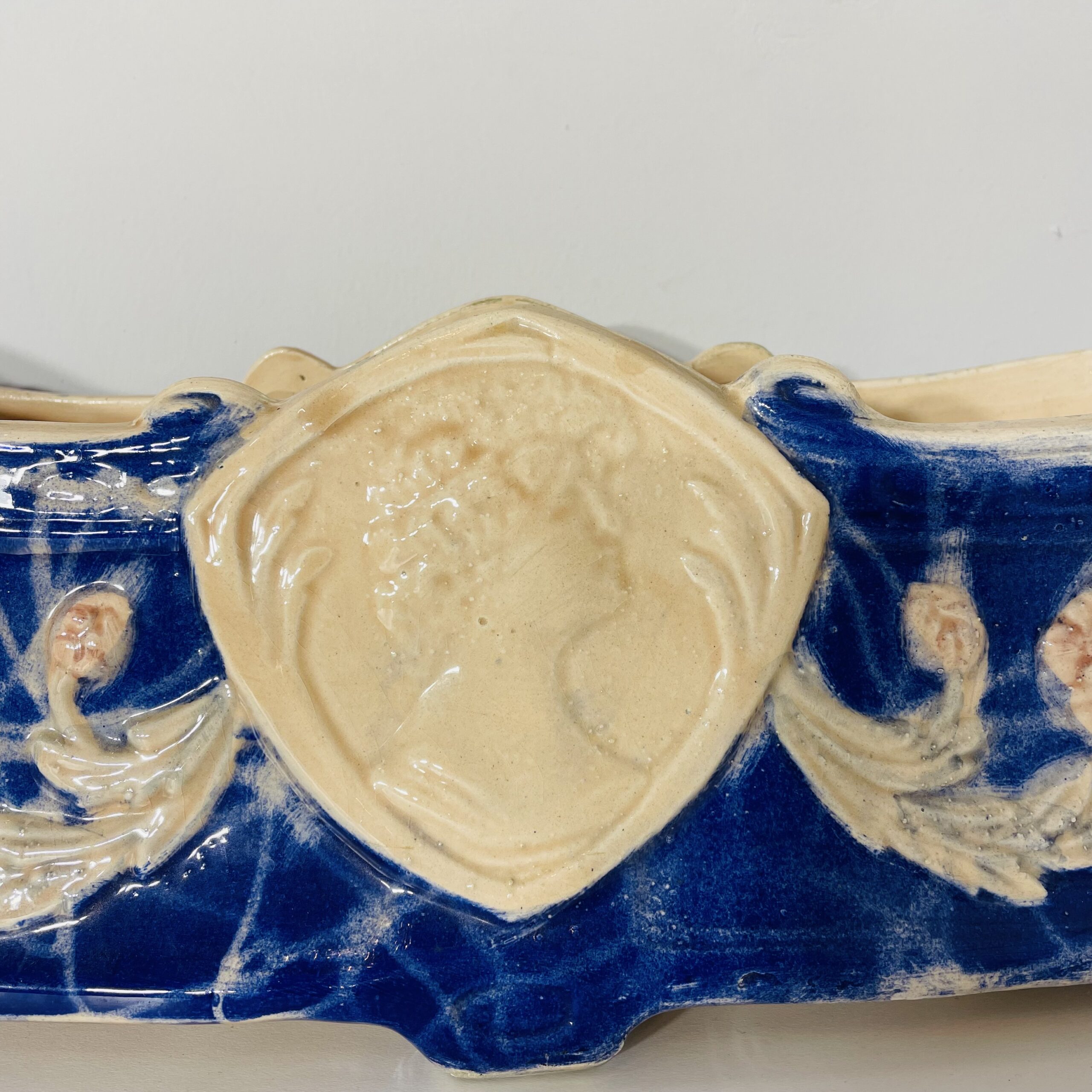 Жардиньерка (ваза для цветов) в стиле Ар-Нуво начала XX века, Франция. Выполнена из фаянса, лепка, роспись. Размер 40х10х15h см.
