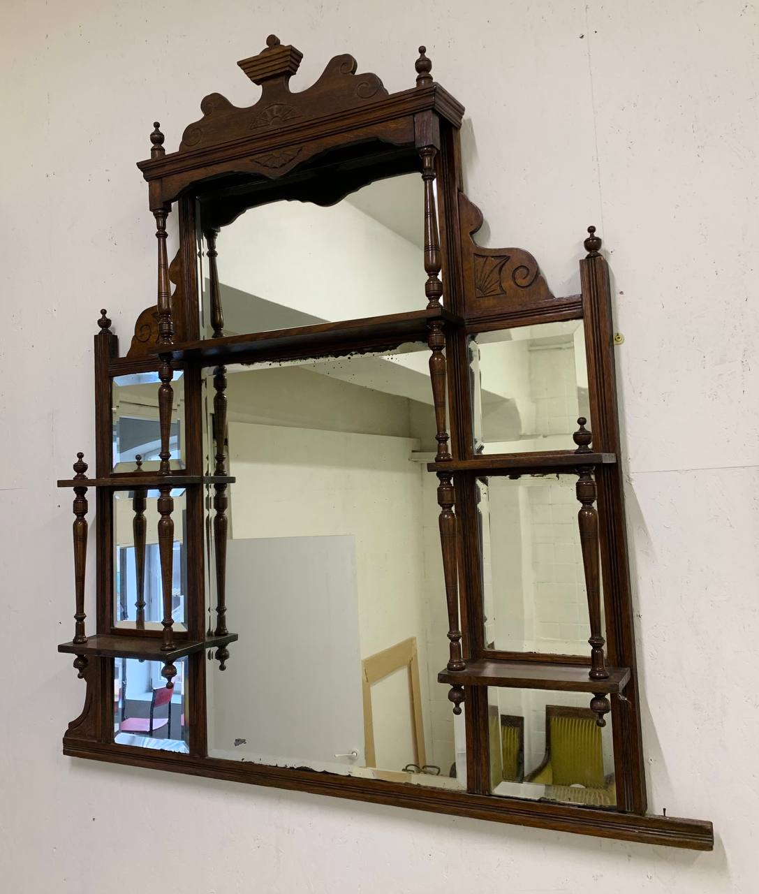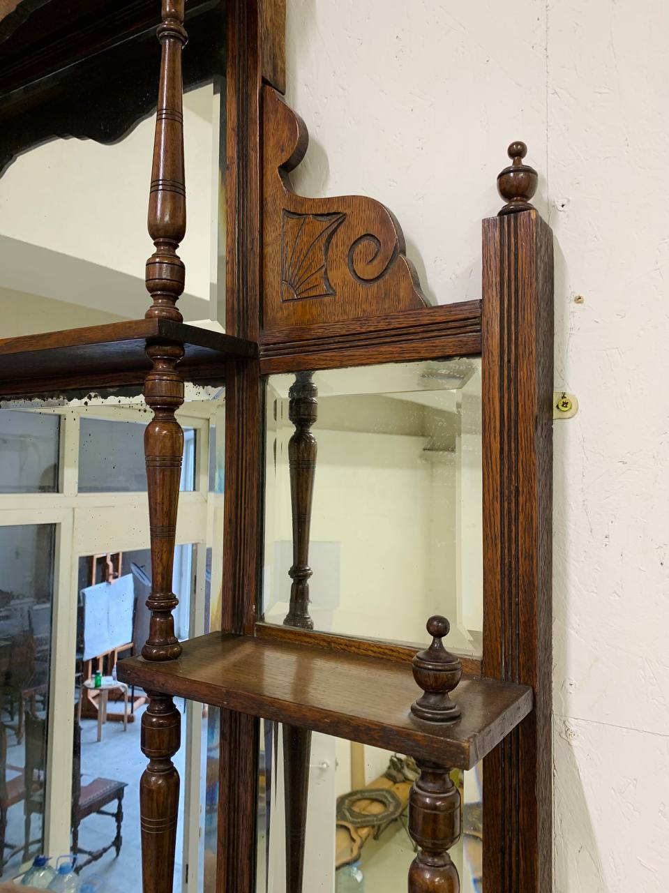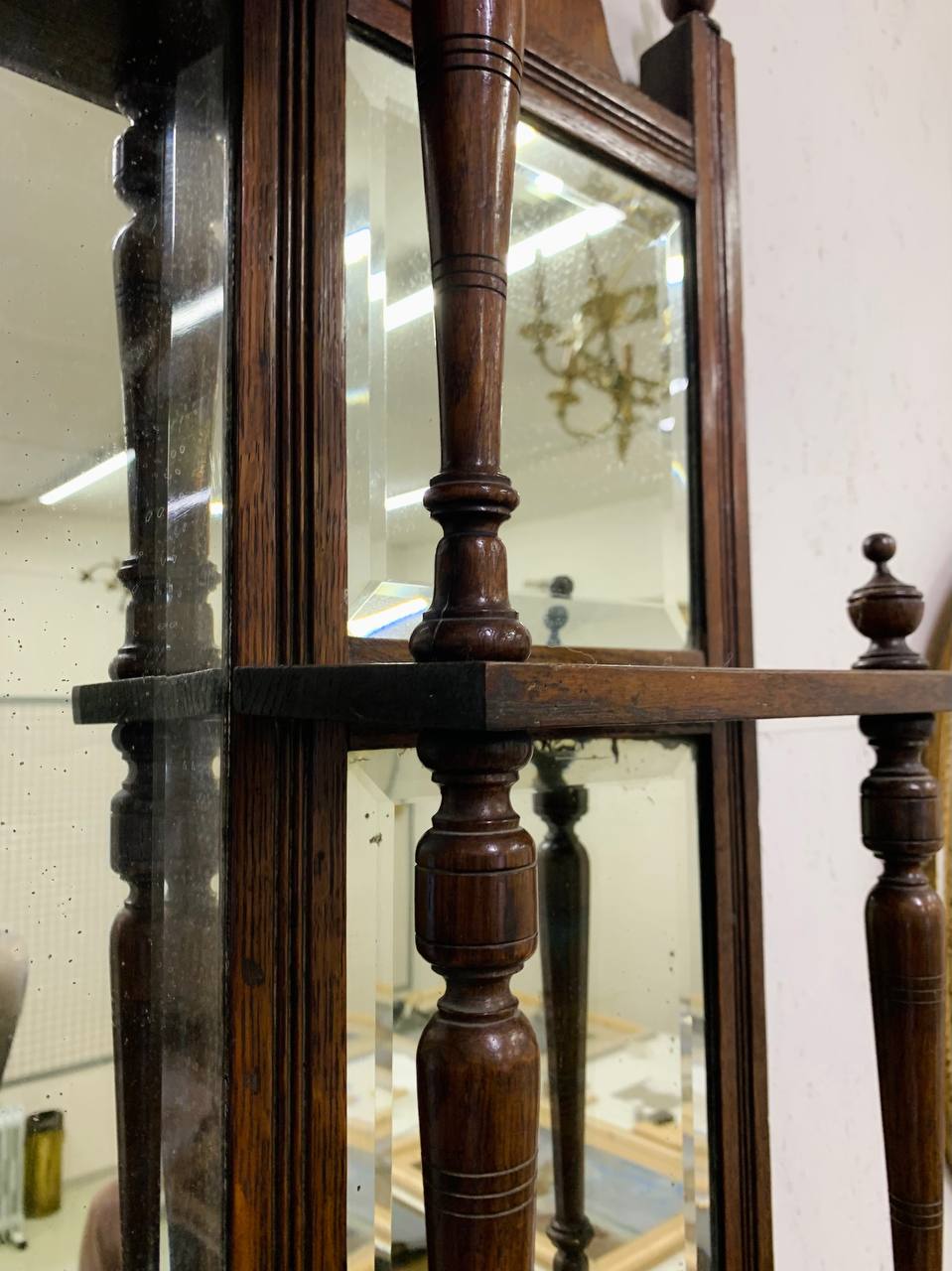 Зеркало с полочками настенное начало XX века, Франция. Выполнено из массива ореха. Оригинальные стекла с фацетом. Размер 128х17х138h см.