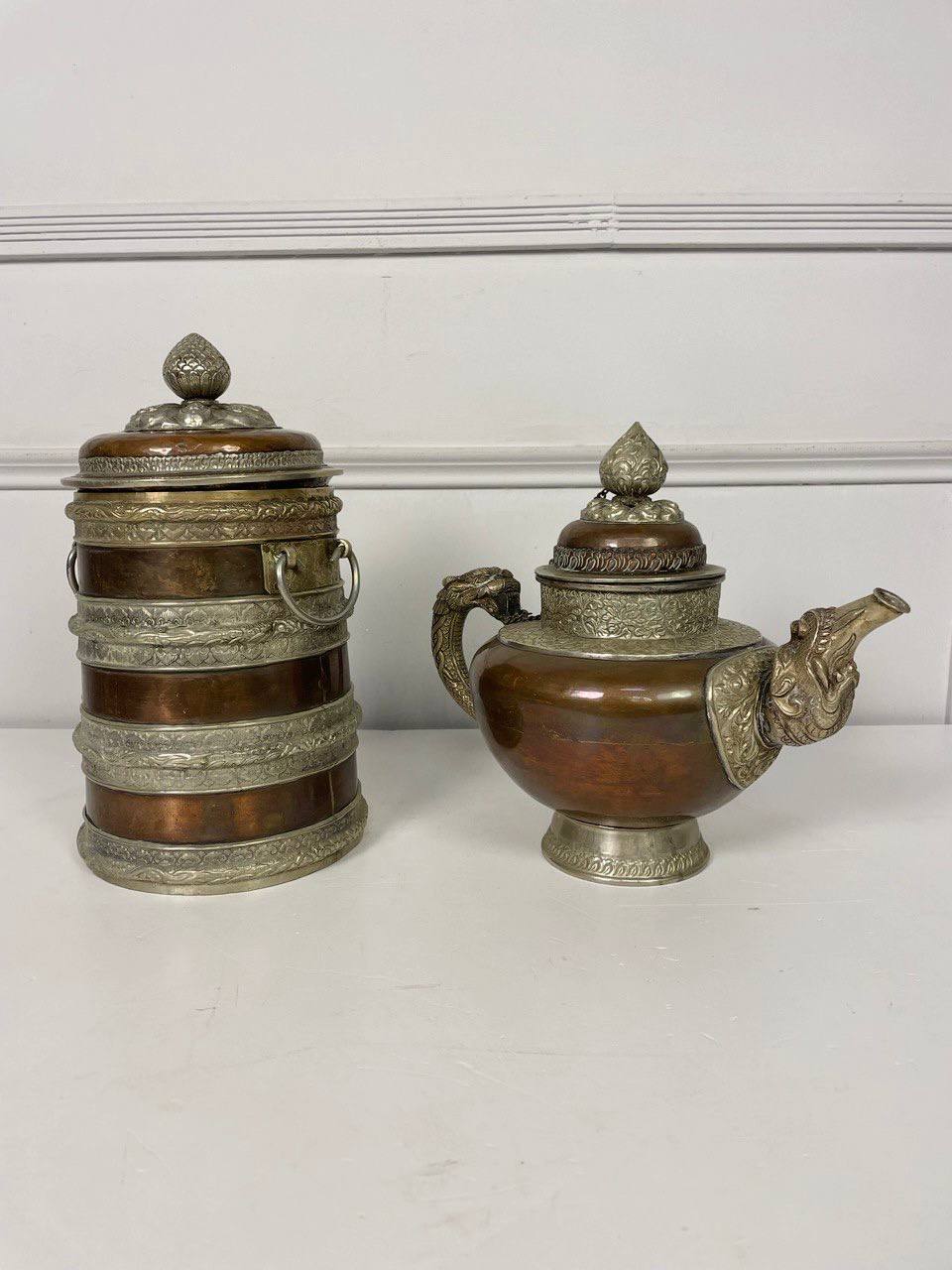 Антикварный чайник и ёмкость для хранения чая или трав XIX века, Непал.