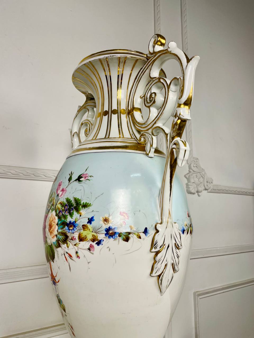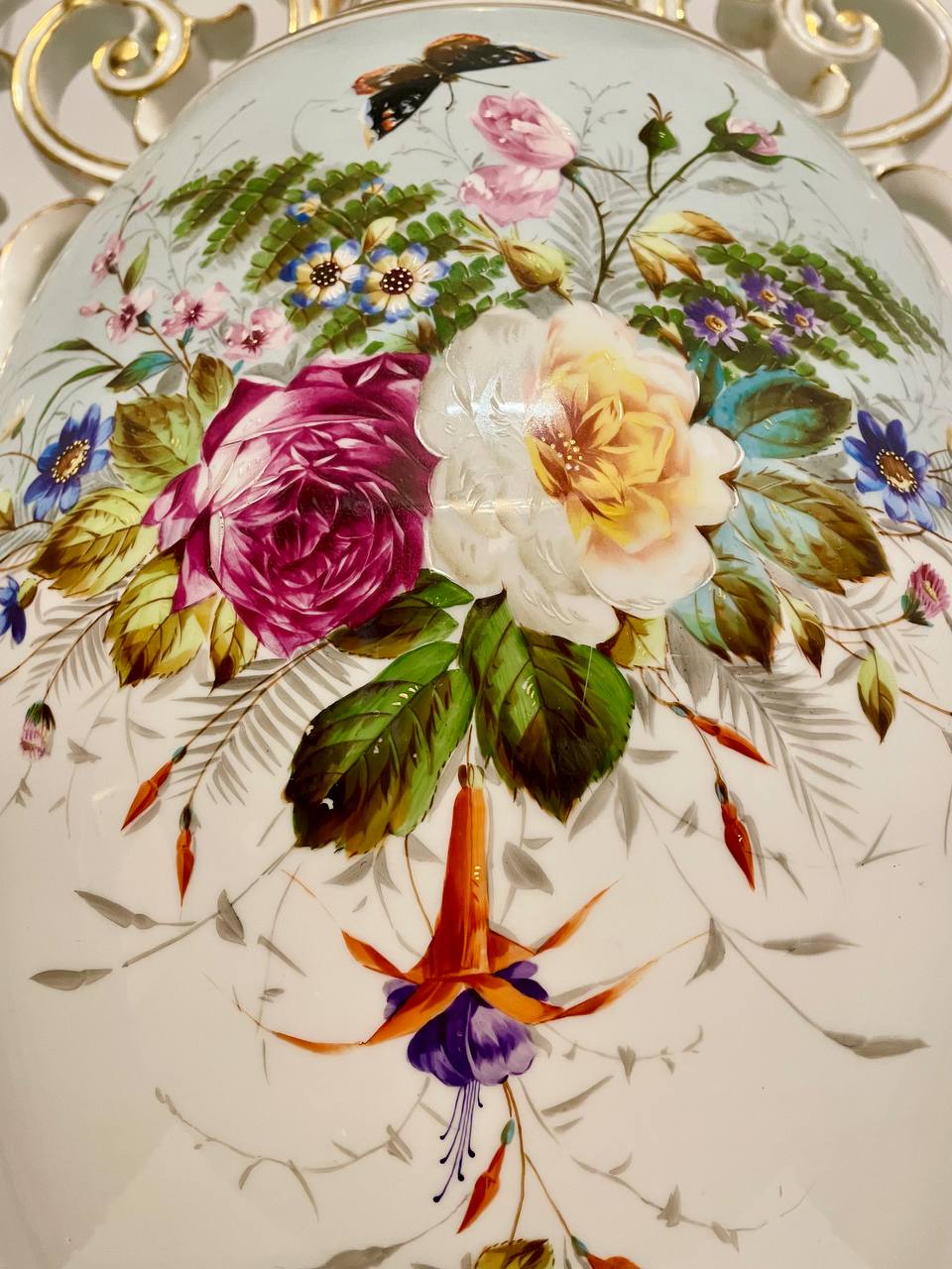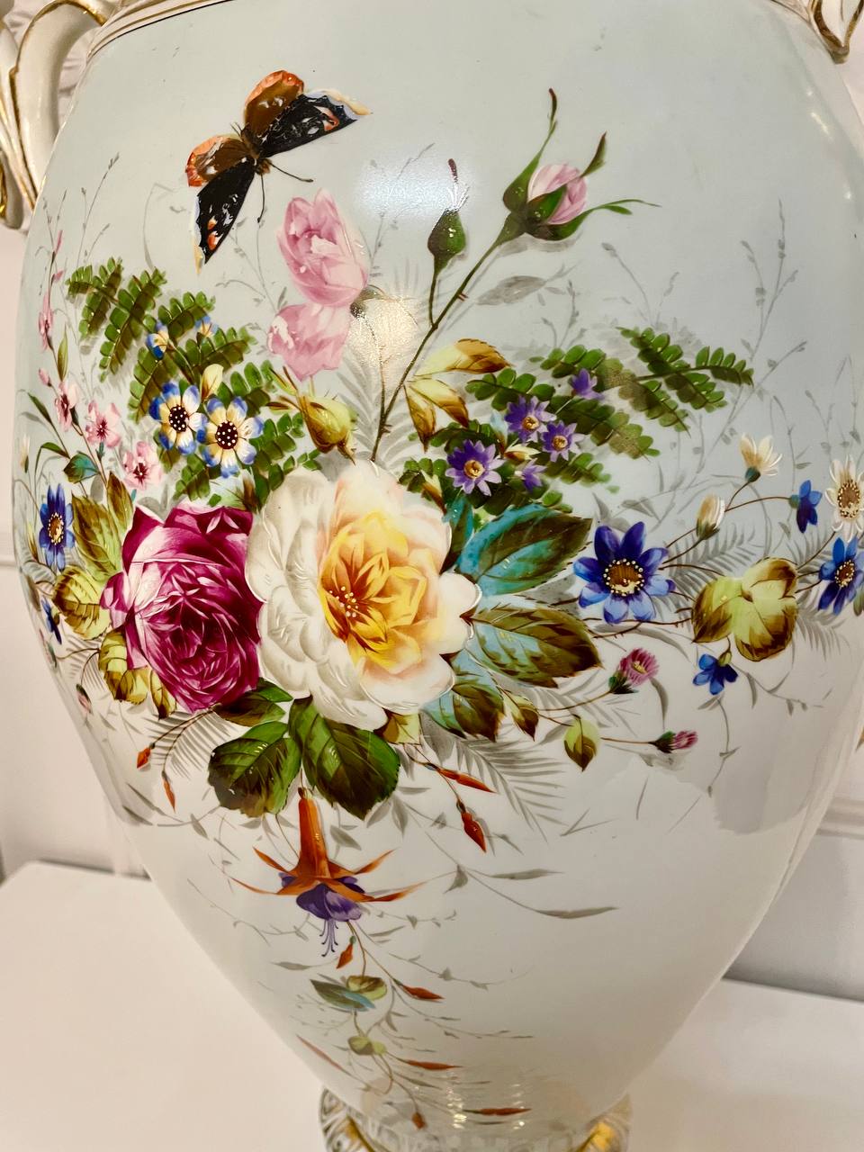 Вероятно, ваза была преподнесена императорской семье в качестве подарка в соответствии с традицией «Высочайших подношений» к традиционным праздникам Рождества и Пасхи. Её монументальный размер, исключительный для фарфоровых ваз с цветочной росписью, свидетельствует о том, что она предназначалась для украшения парадных дворцовых залов. Роспись исполнена в модной во 2-ой половине 19-го века стилистике неорококо. Симметричные ручки выполнены в виде завитков рокайля. Яркая цветовая гамма с насыщенными нарядными оттенками характерна для изделий ИФЗ 1870-х годов. Есть все основания предполагать, что данная ваза единственный сохранившийся экземпляр.
