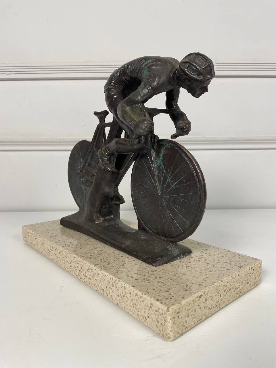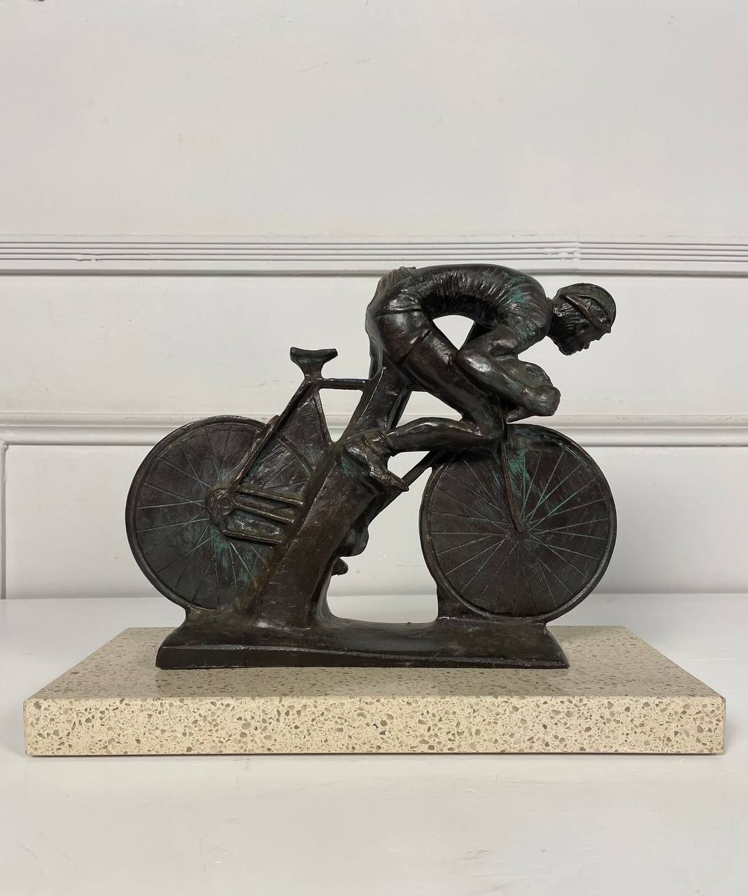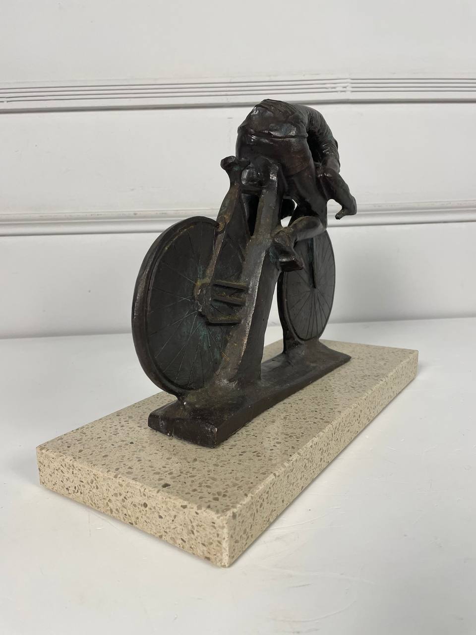 Бронзовая скульптура «Велосипедист» на каменном основании, вторая половина XX века, Европа.