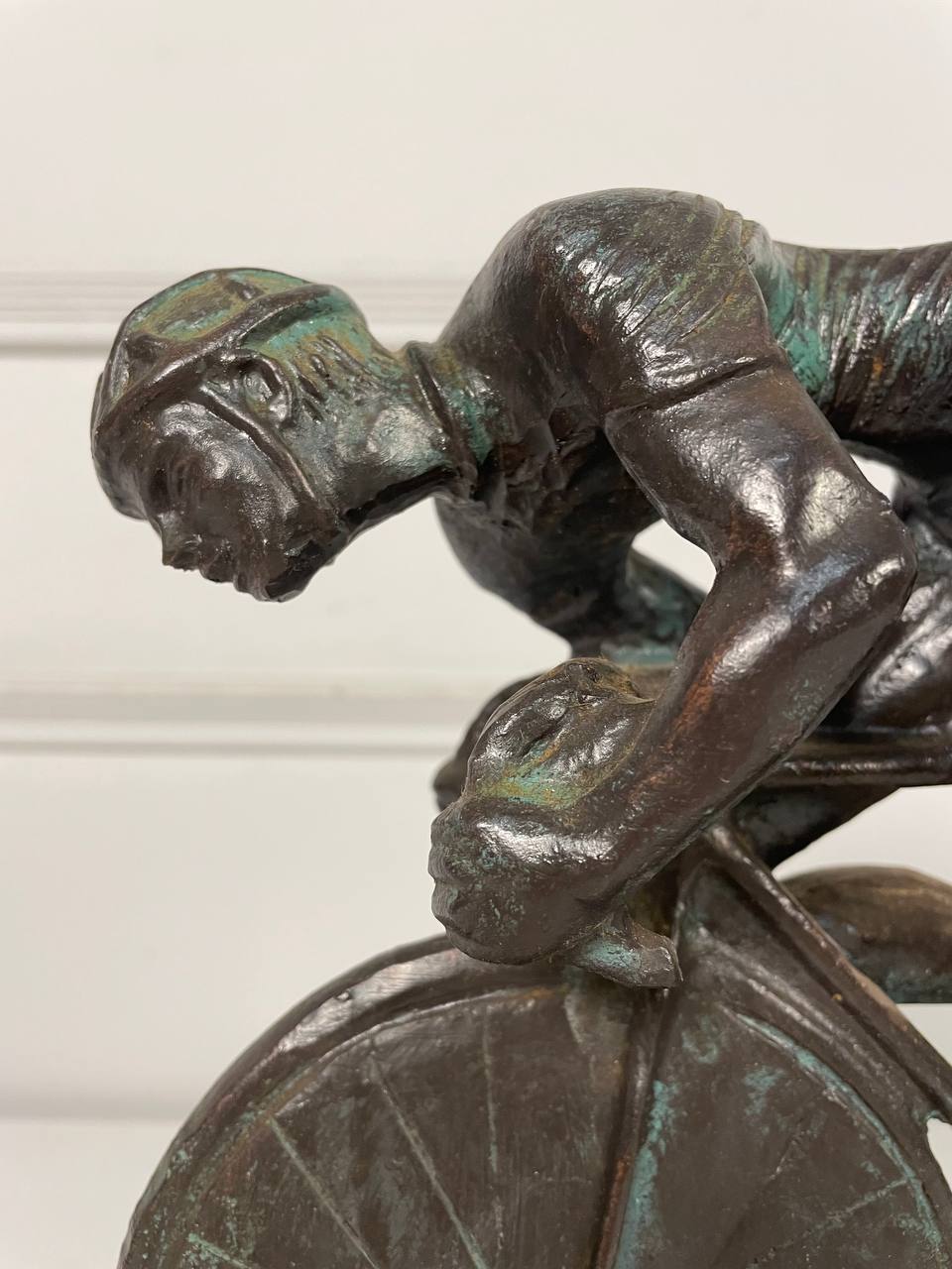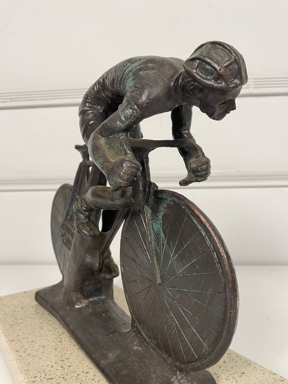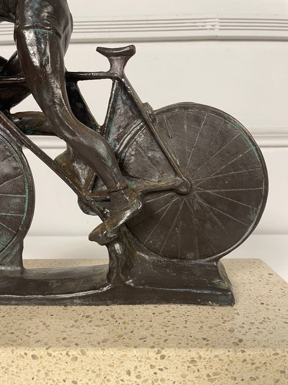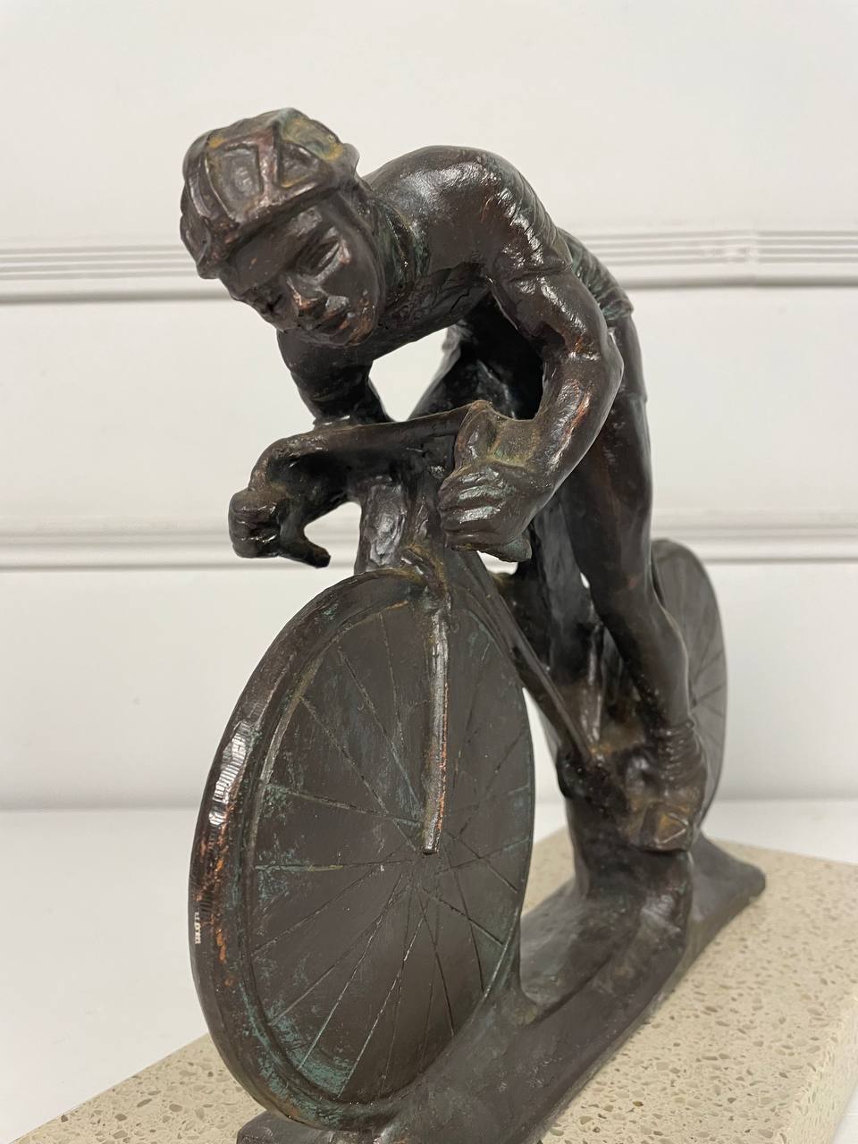 Бронзовая скульптура «Велосипедист» на каменном основании, вторая половина XX века, Европа.