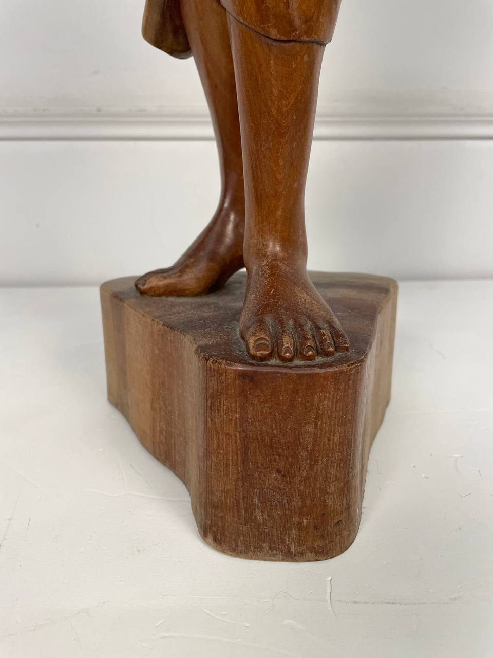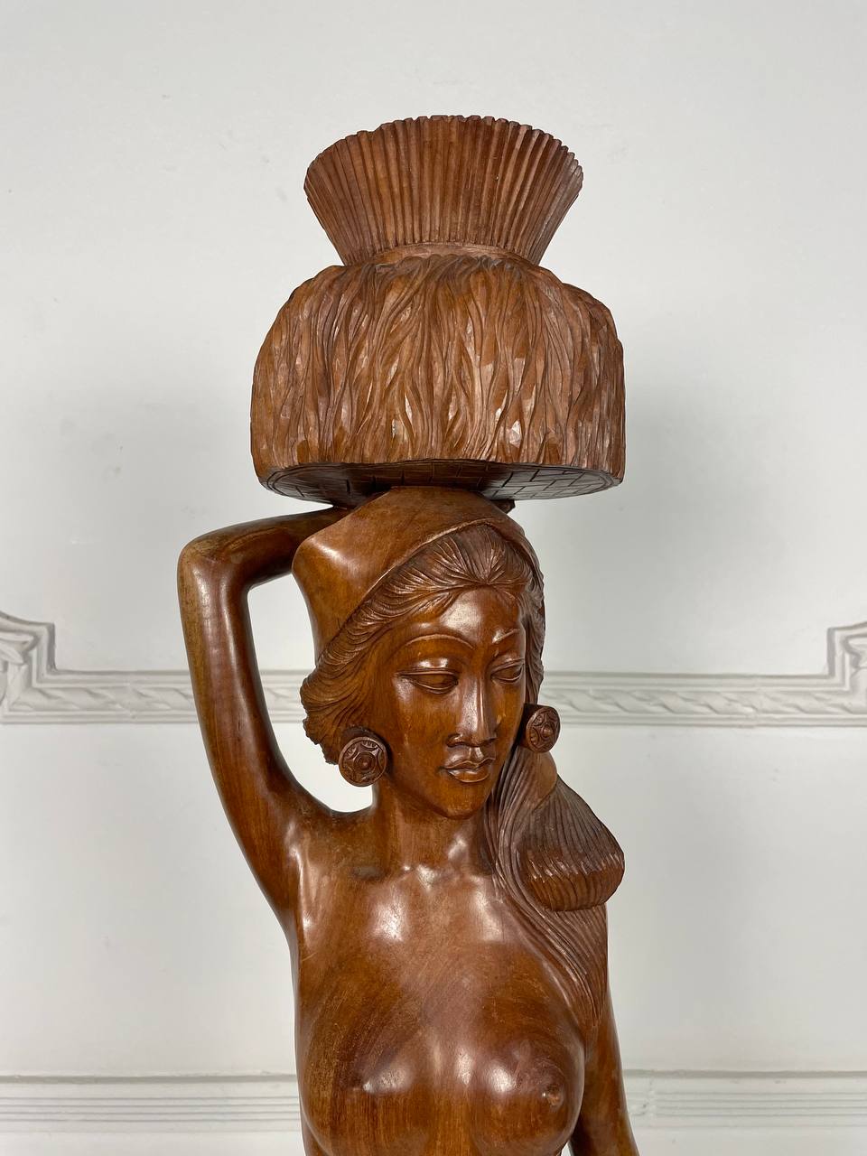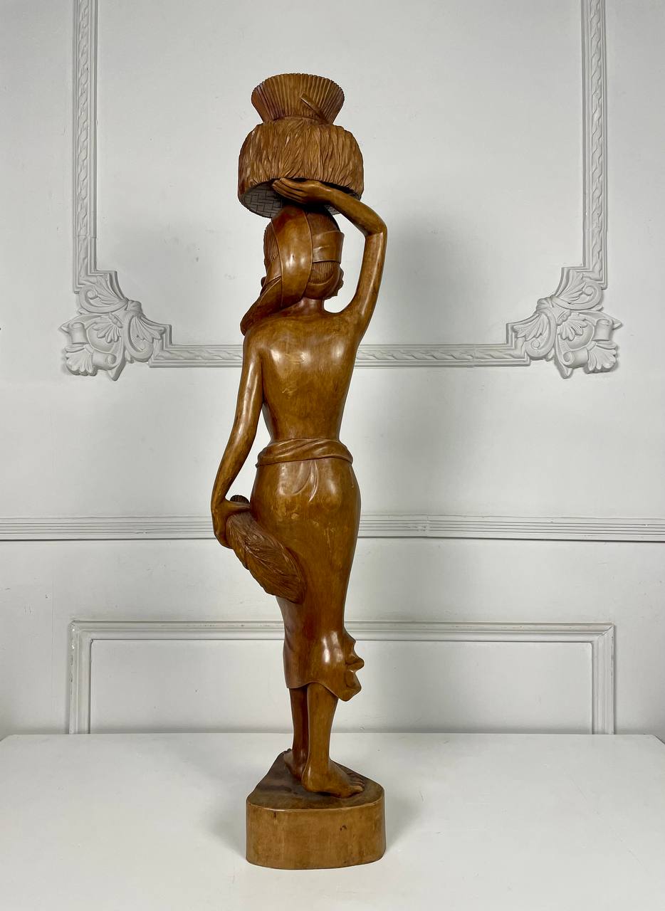Антикварная большая скульптура восточной девушки, несущей на голове стог сена, середина XX века.