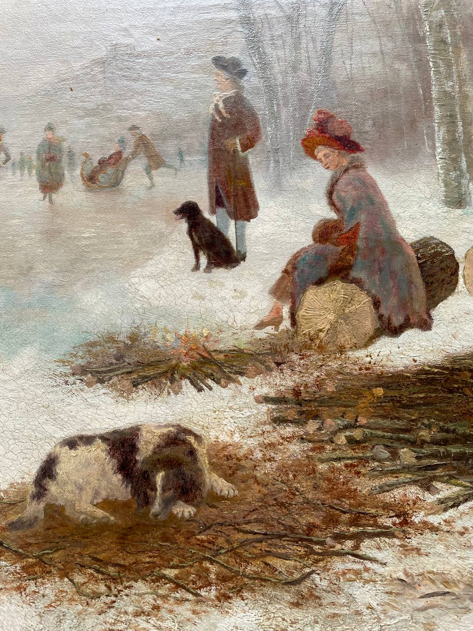 Многофигурная зимняя сцена, выполненная в традиции голландских мастеров XVII века (Хендрик