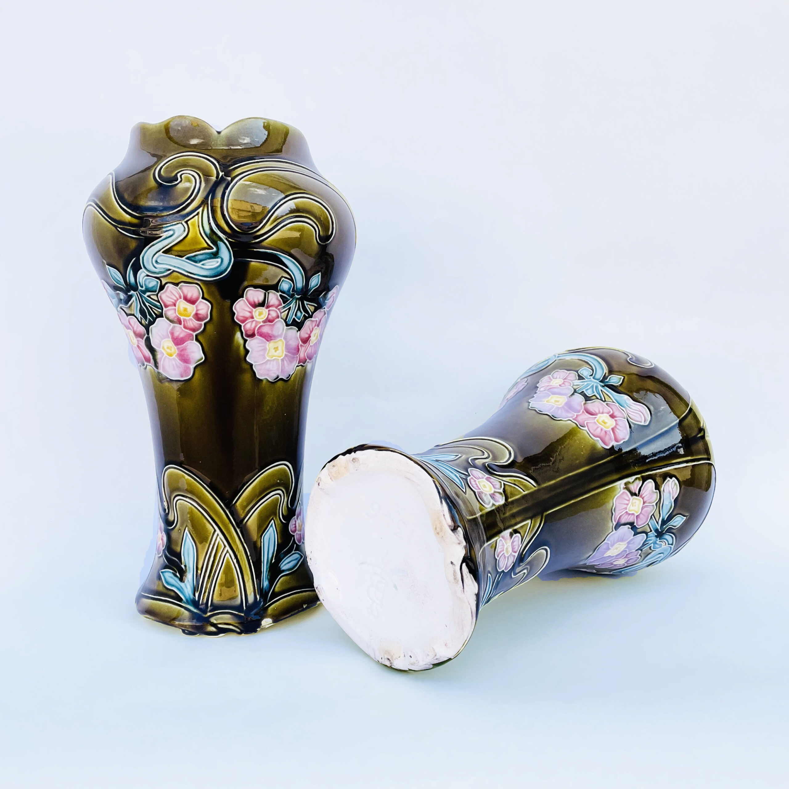 Пара ваз периода Ар Нуво начала XX века Франция. Фаянс, майолика. Очень красивое сочетание по цвету.