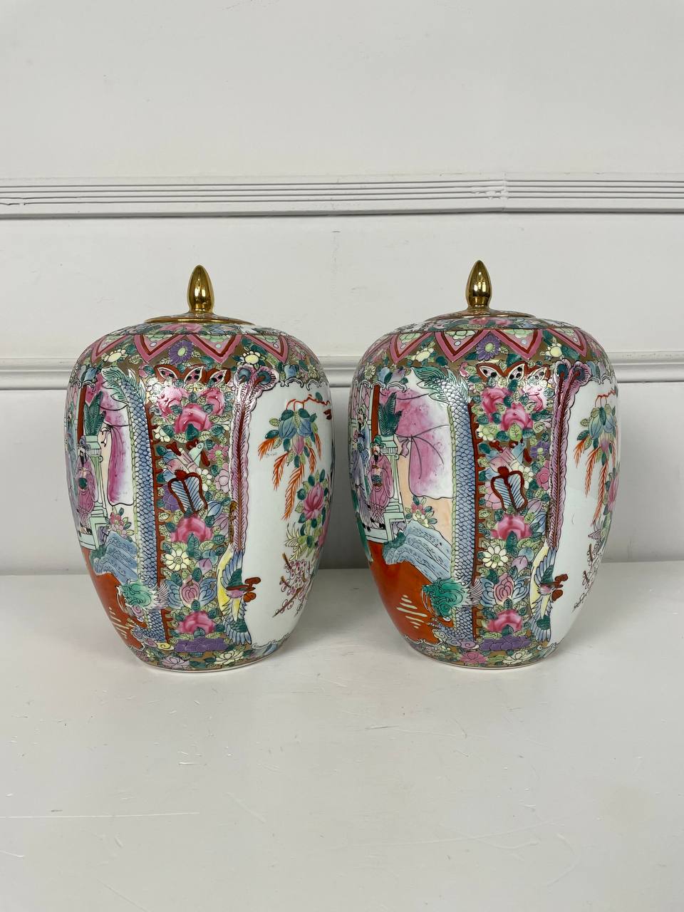 Пара больших китайских ваз с крышечками (меньшего размера обычно называют чайницами) середины XX века.
