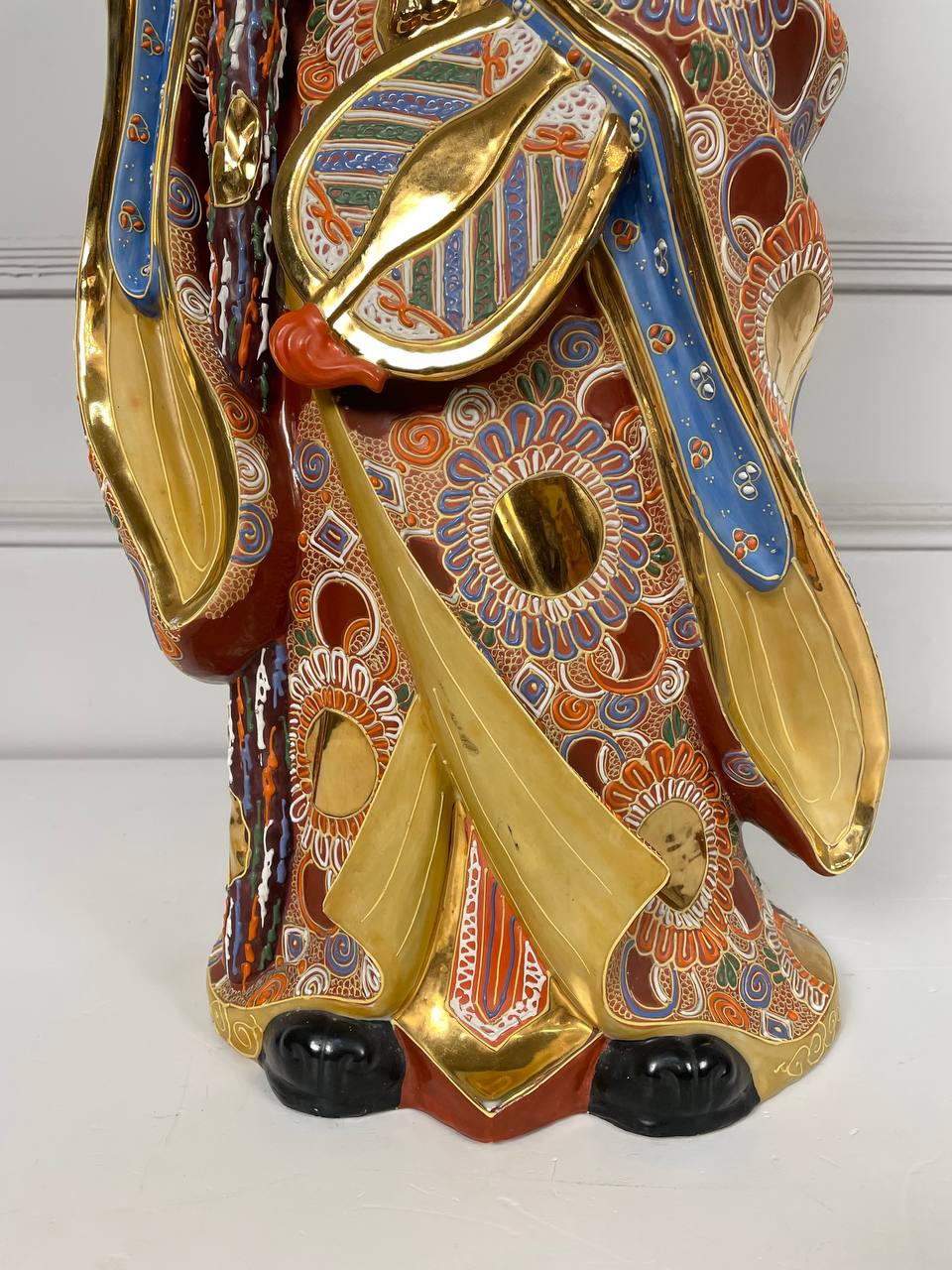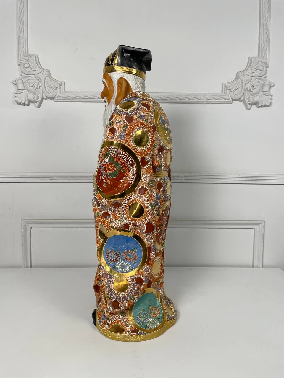 Антикварная Большая скульптура старца Дзюродзина, одного из семи мудрецов (богов счастья). Фарфор, глазурь, золочение, полихромная роспись. Япония, мастерские Кутани, 1940х годов.