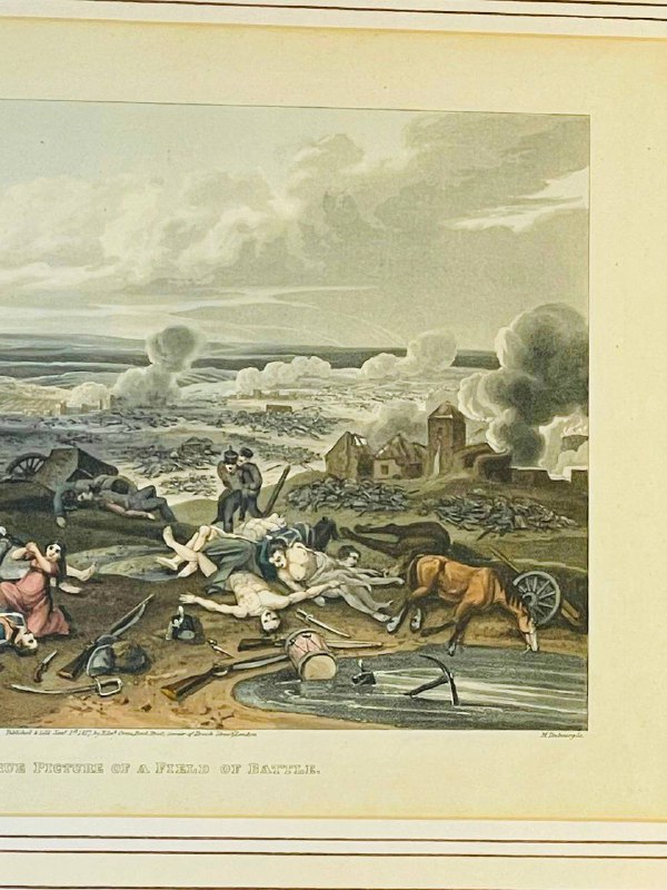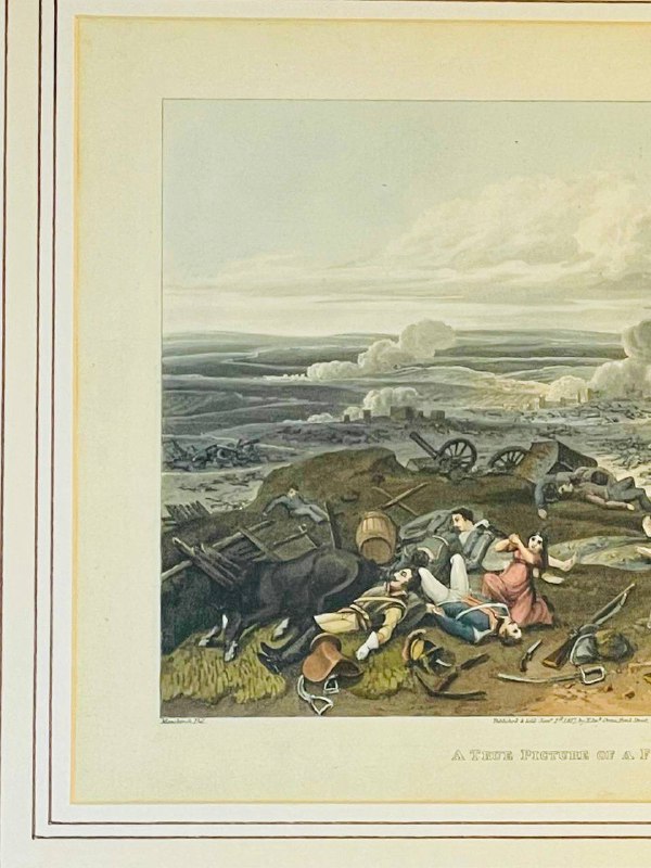 Антикварная гравюра "Достоверная картина поля боя", ХIХ век, Англия. Цветная акватинта с ручной раскраской акварелью. Издательство Эдварда Орме (1775-1848), Лондон, 1817. Размер: 54х45 см.