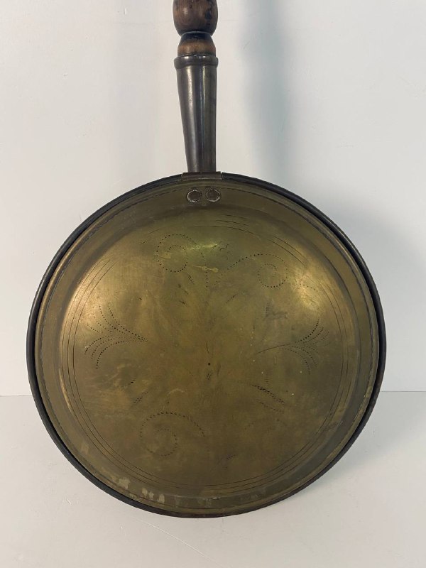 Старинная грелка, XIX века. Бельгия. Медь. Грелка заполнялась горячими углями и использовалась для согревания постели. Размер: 30х110х9h см.
