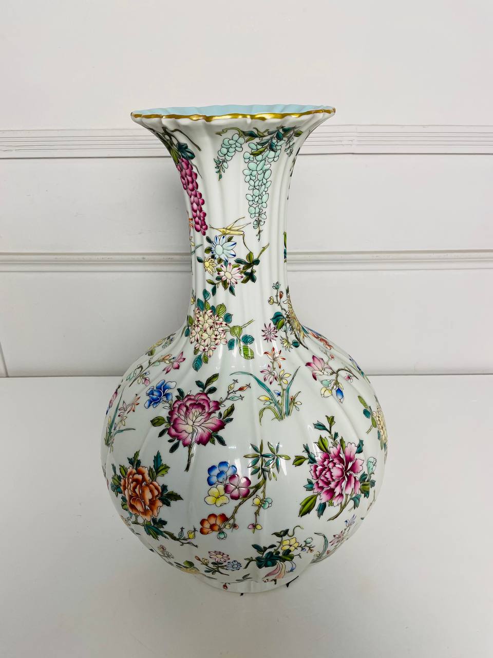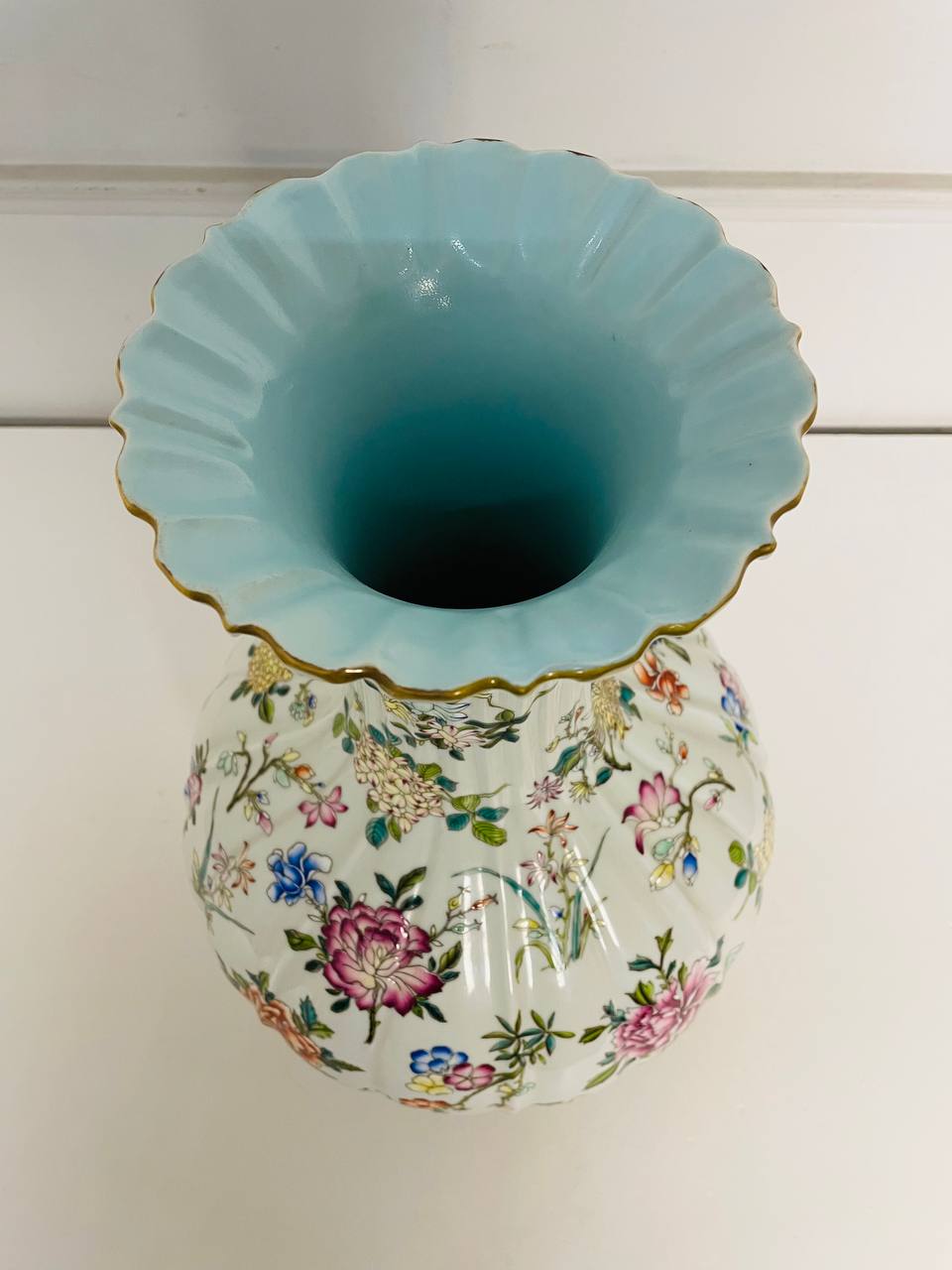 Редкая Ваза периода республики 1940х годов, Китай. Выполнена из фарфора. Ручная роспись цветной эмалью. Позолота в отличном состоянии. Музейное хранение. Отличное состояние. Высота 50 см. Диаметр 30 см. Диаметр горловины 17 см.