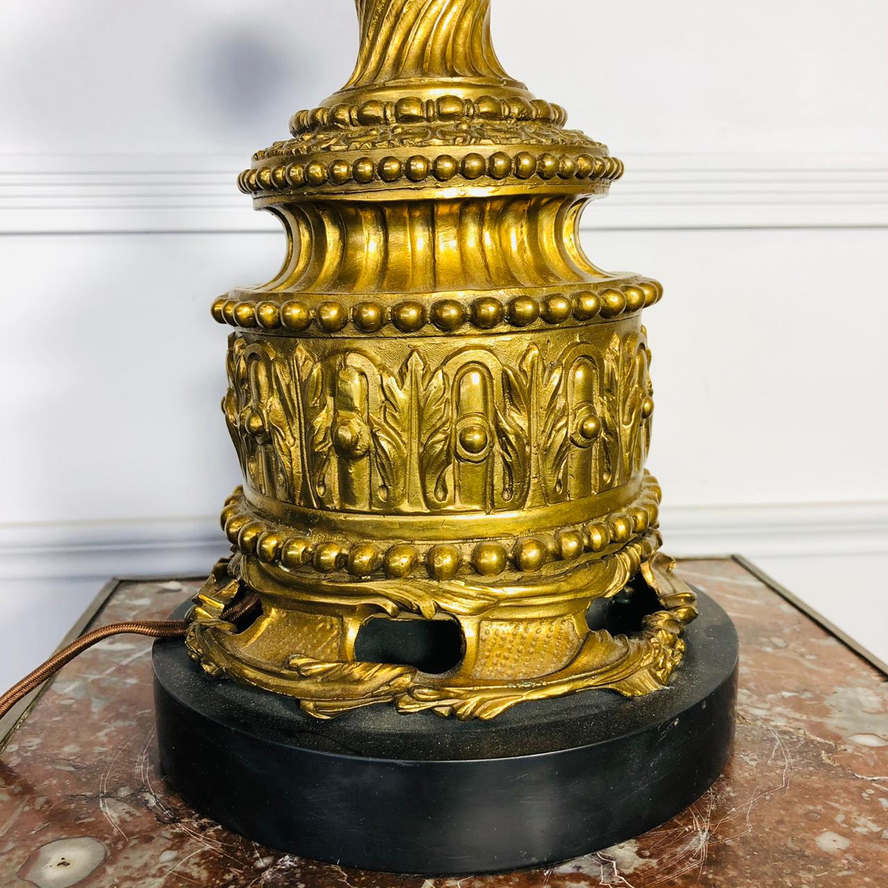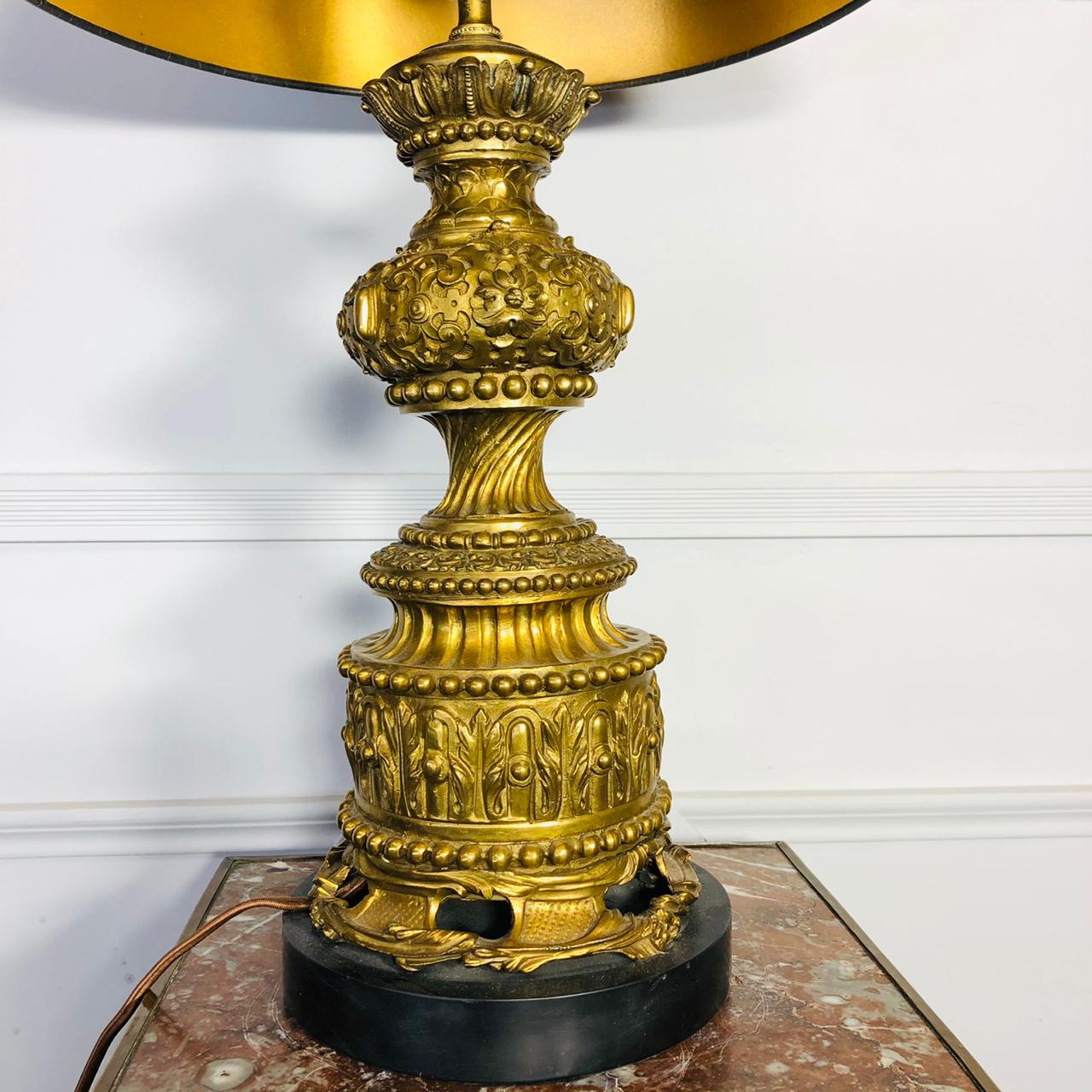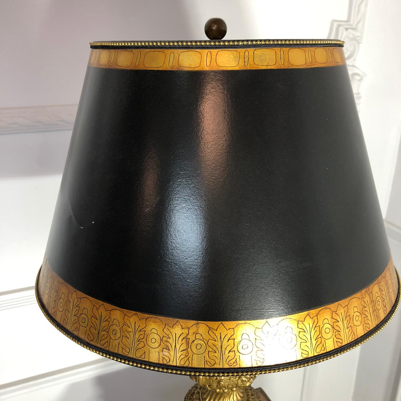 Большая бронзовая лампа на мраморном основании первой половины XX века, Франция. Великолепное литьё бронзы. Оригинальный абажур. Лампа с диммером. E BANISTA Высота 65 см. Д абажура 39 см.