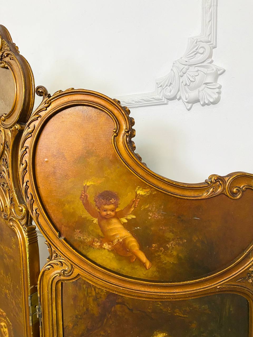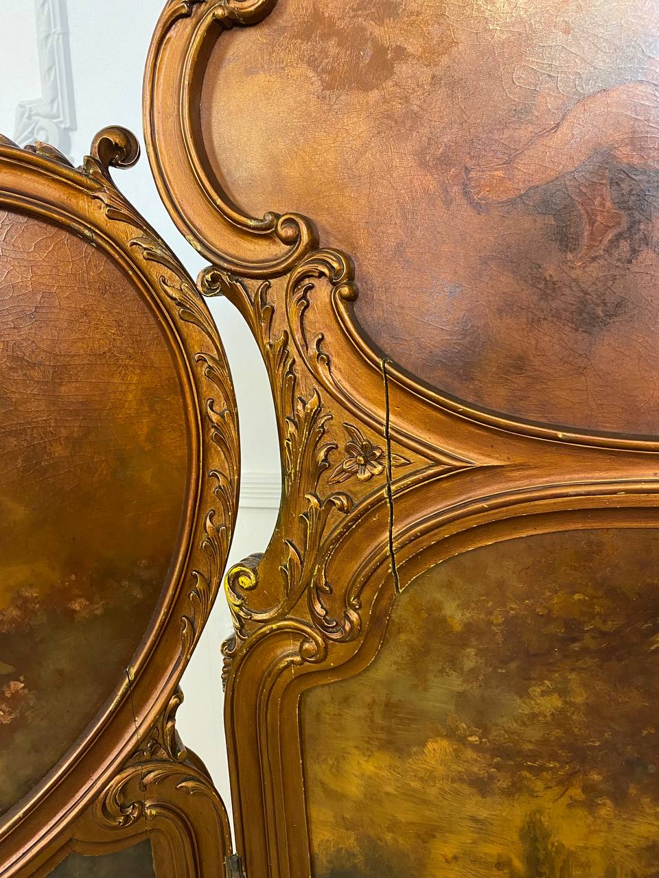 Ширма антикварная конца XIX века в стиле Louis XV, Франция. Выполнена из ореха и позолоты. Ширму украшают полотна с живописью. Размер 150х152h см.