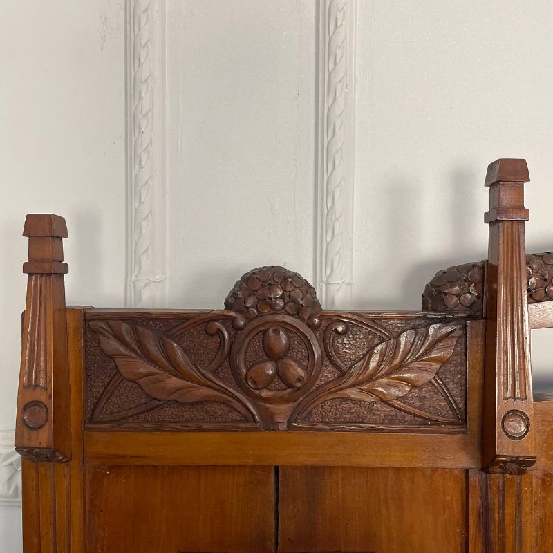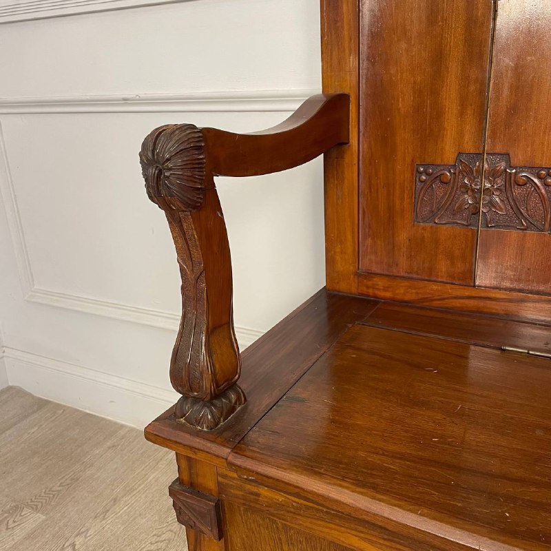 Скамья с высокой спинкой в стиле Ар-Нуво, 1920-е годы, Франция. Массив ореха, резьба. Размер: 158х45х48/158h см.